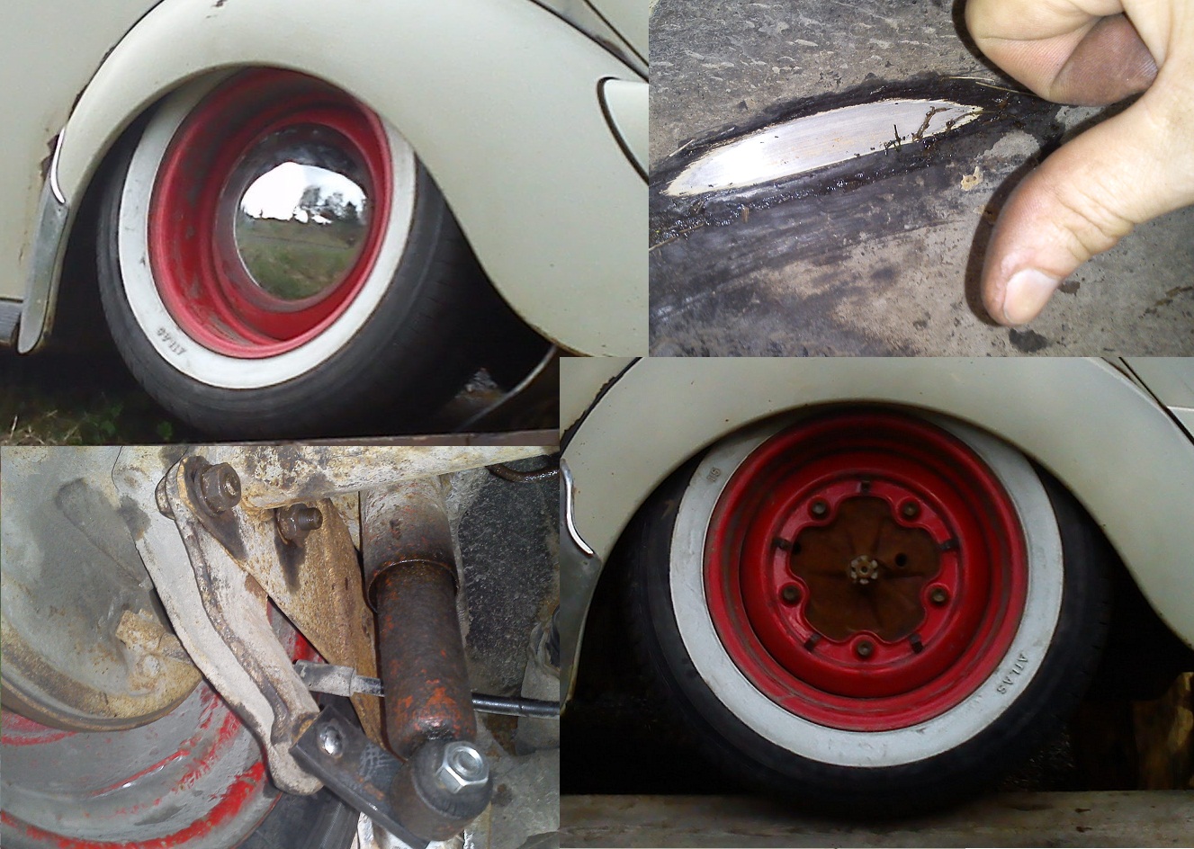 Fram blev det 145/65-15 men utan sänkspindlar(får se om jag skaffar det i höst efter bes)styrlederna är flippade och framvagnen kortad 10cm tornen är ersatta med fästen på innerskärmarna och krängningshämmaren kortad med rör utan på.