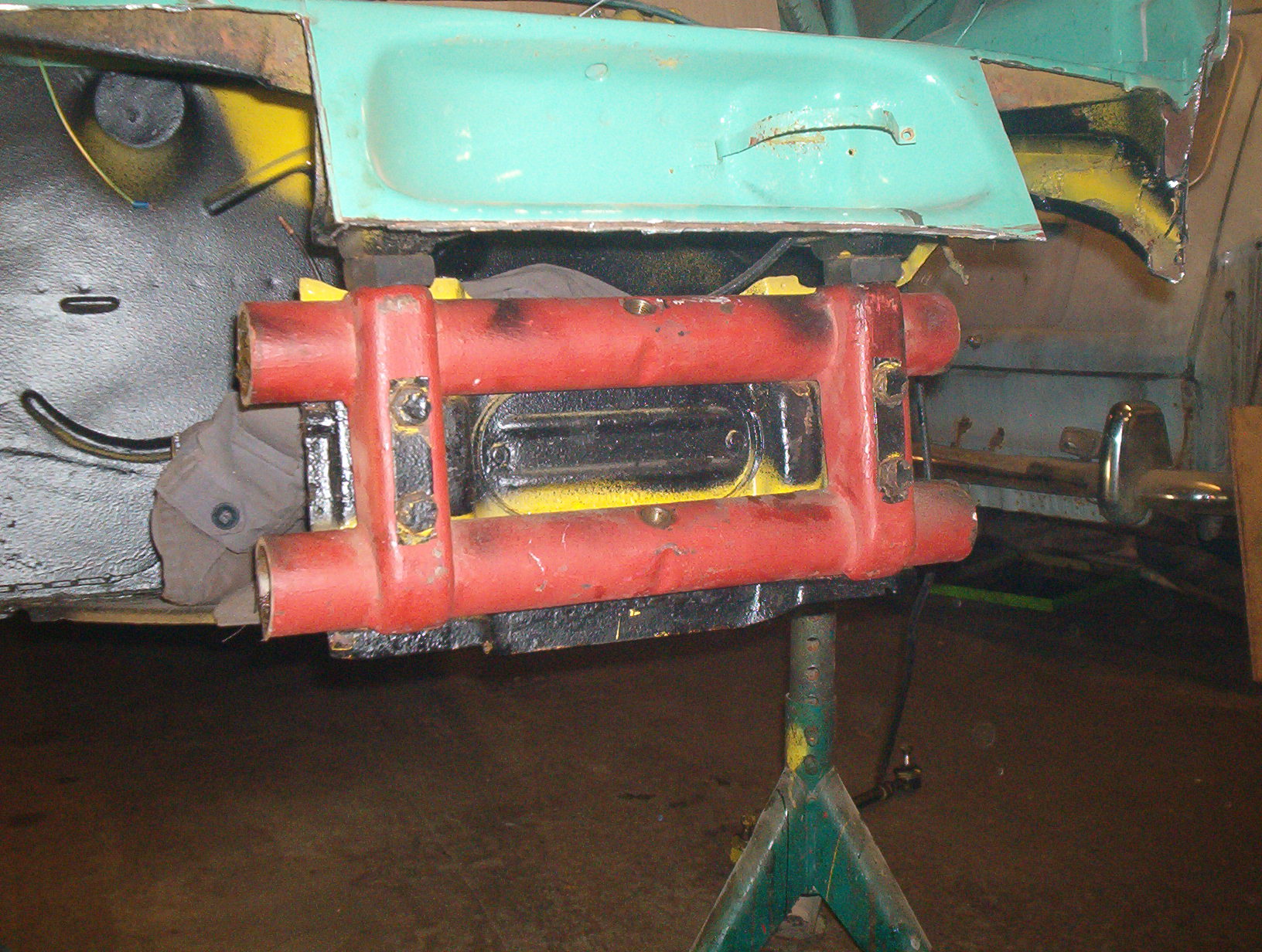 dag 2 ja va F" jag kapade när jag ändå var i farten så nu har den ca 8-10 cm frigång under torpeden med sänksatts på lägsta,kvällens fundering blir ratt axelns förlängning, sen när man väl börjar o trixa så kommer det ju en massa små fix som ett brev på posten br-rör ja visst ja oj för korta ICQ/ad  tanken är ivägen h-mätar vajer för kort Default/hmm m.m men så är det när man inte kan låta en bil vara orginal utan måste skruvas ICQ/ag (morsan hon bara skrattar o skakar på huvet bilen var ju fin )