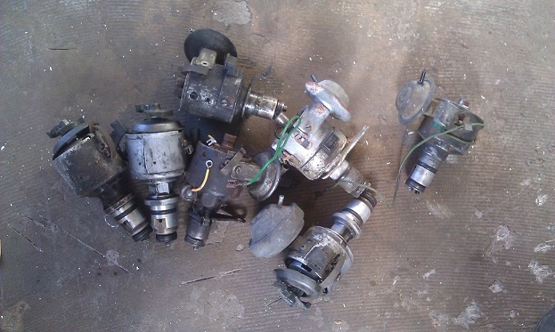 Det var den i mitten, gjutjärnsfördelaren (vju4br8/vjur4br8?) jag var intresserad av. Egentligen var det en reservdel som går att plocka från den (och andra bosch fördelare) jag var i behov av. Så ju billigare och okomplett det går att få tag i, ju bättre. ICQ/ad