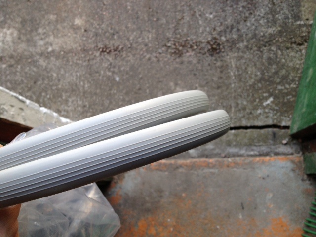 Har försökt mig på att få på nytt gummi på handtagen till mellansoffan på min splitbuss.