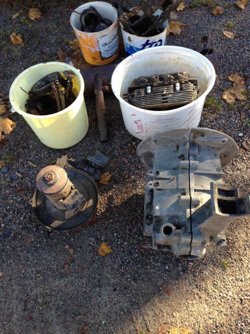 Senaste inköpsresan resulterade i växellåda från -51 som jag nämnt tidigare. Tre 25hk motorer i varierande förfall. En generator från -49 och lite blandade förgasare. Ett av blocken var från aug. -50 och det hoppas jag är renoveringsbart.