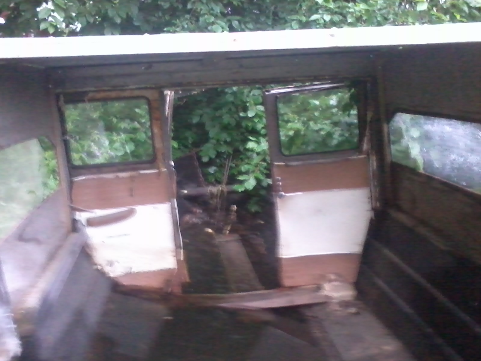 På bild 1 o 2 är det fritt blås från baklucka till instrumentpanel. På bild 3 o 4 sitter det väggar o fönster där. På bild 1 o 2 saknas hela höger sidan o taket hänger ner, men på bild 3 o 4 är taket rakt o det sitter lastdörrar o sidovägg på plats.