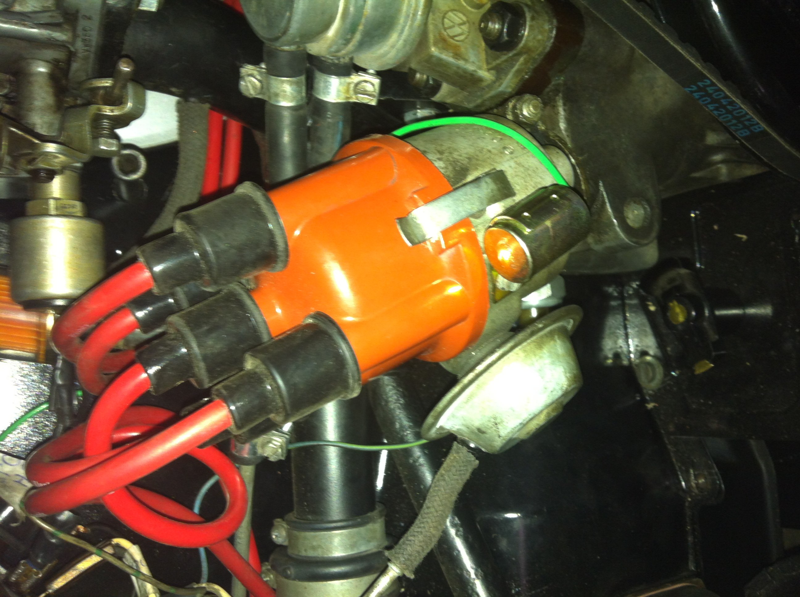Jag har ställt in fördelaren, bytt kondensator och brytarspättsarna (inställda till 0.4) tändkablarna är ställda efter 1-4-3-2, nytt batteri, det kommer gnista från tändstiften