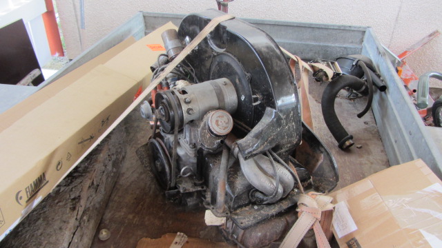 Halloj. Säljer en AB motor, 1300cc med dubbelportstoppar. Jag fick med denna i en bytesaffär och enligt säljaren så skall den vara renoverad. Jag låter detta vara osagt då motorn inte är komplett och heller ej startad. Den saknar förgasare, avgas och svänghjul. Det sitter doghousekylare på den så nån har "pulat" med denna motor. Det står 14V på generatorn. Det sitter en "Y" koppling vid oljetryckskontakten för att kunna ha oljetrycksmätare inkopplad.Motorn finns i Köping, Västmanland och står som synes på min kärra som kan lånas ut inom rimliga gränser... Bor Du i Västmanland och har dragkrok så kan Du få låna kärran och köra hem motorn.  ICQ/ag