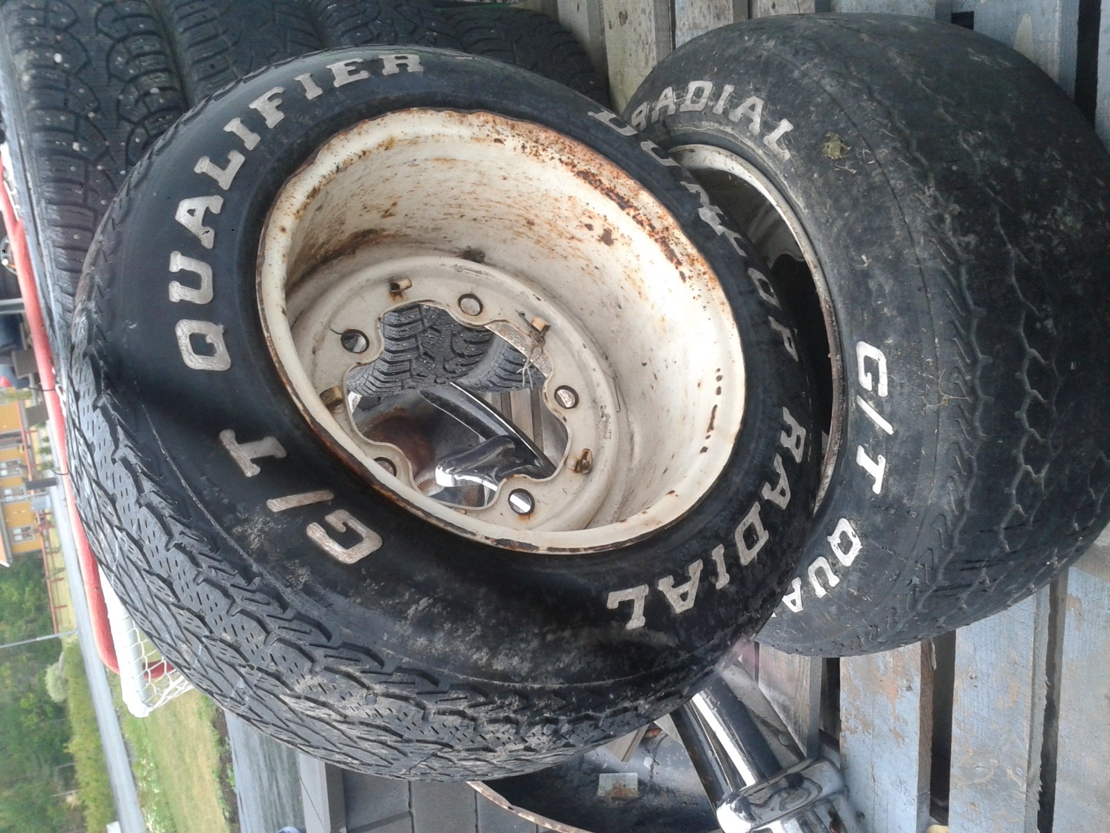 Har ett par bredafälgar. Vet ej så mycket om dom. Dom är ca 30 cm breda mellan fälgens ytterkanter. Det finns ytrost och mindre skavanker på dom och däcken som sitter på är inget att hänga i granen. Dom skulle nog sitta fint på en baja eller buggy.