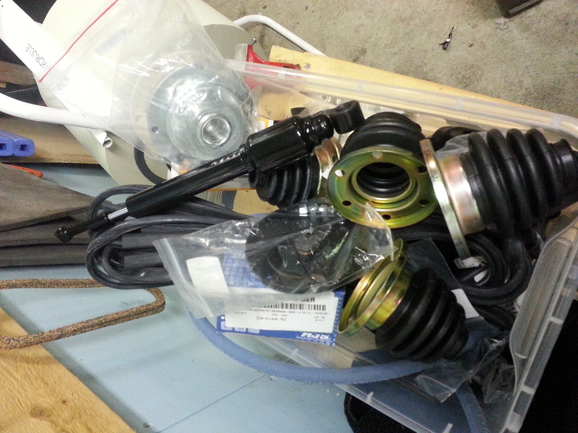 Efter ett ytterst sporadiskt nyttjande av Boxerville så tänkte jag att det är dags att delge er lite info/bilder på pågående renovering av en 72:as cabriolet. Bilen har en lång historia av icke genomförda renoveringar och var sist i bruk 1982. Efter att ha stått i över 30 år så är den nu relativt nära att väckas ur sin törnrosasömn.... Folkan har genomgått de sedvanliga transplantationerna av blästring, ny plåt, tennspackling och slutligen ett par lager av cellulosa...just det, ingen modern syntet/v.bas här inte. När jag kom över projektet så var en del av detta gjort, ett hyffsat bra utgångsläge med flyttkartongsvis av delar = Walk in a park, tänkte jag å var inställd på att snabbt komma ut på vägarna med vinden blåsande runt skallen. Nu ett tag senare så har min 63:as soltakare fått stå för detta...Nåväl, ett par taskiga bilder tänkte jag försöka posta under resans gång och säkerligen kommer jag att behöva en hel del hjälp med placering av delar i tillhörande ihopmontering.