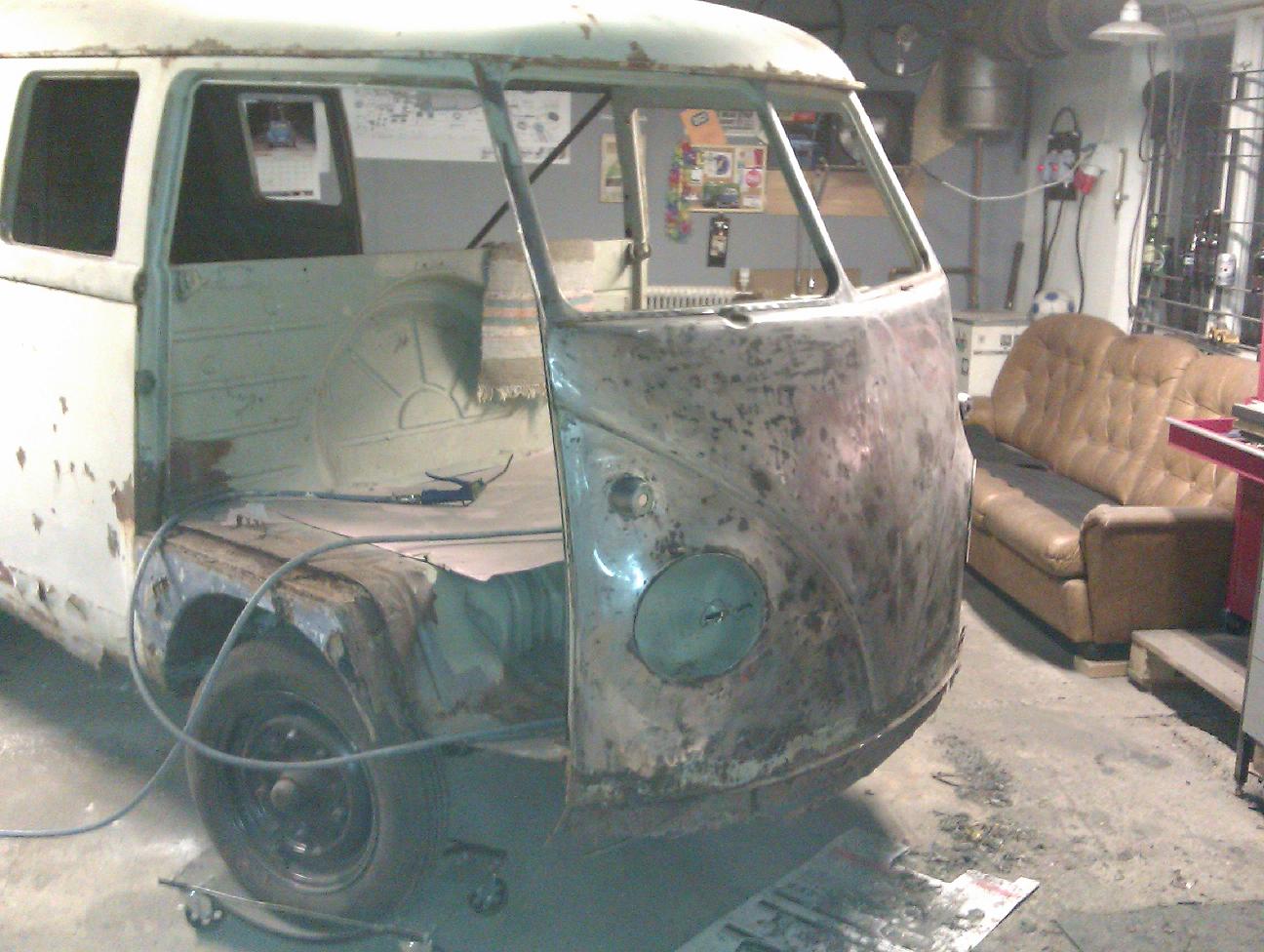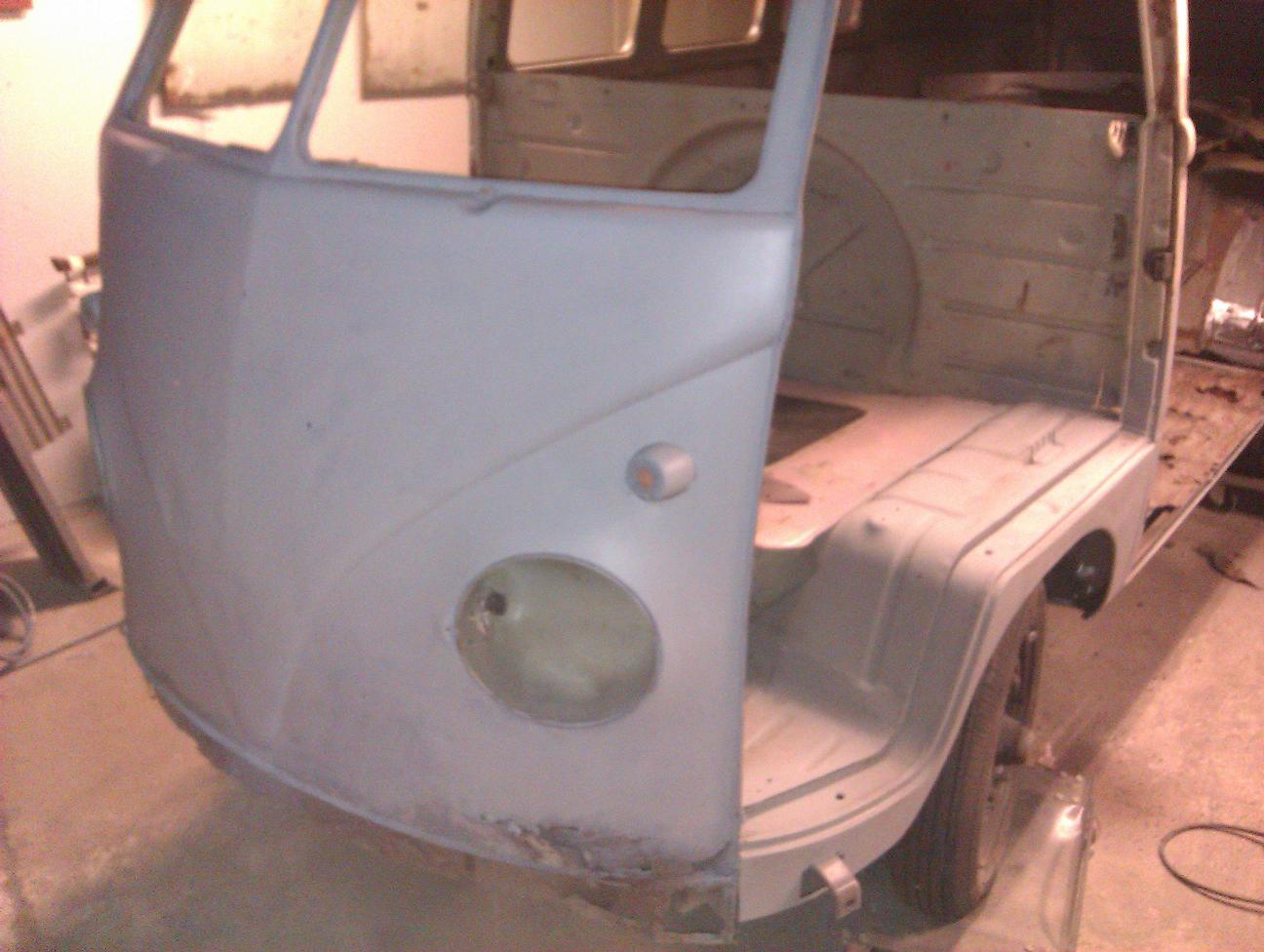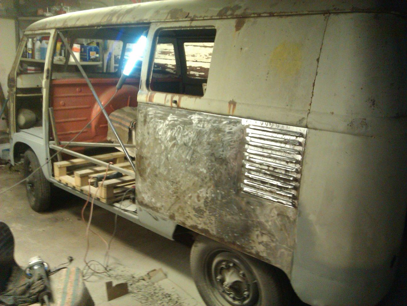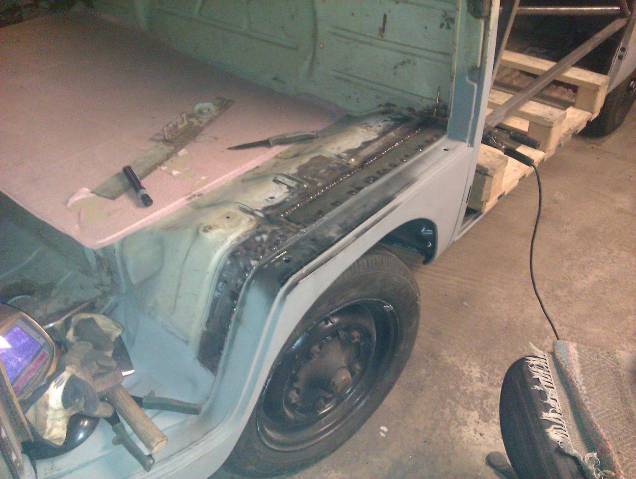 Slänger in bild på fronten iaf från när den blev plåtren samt grundad. Här ser ni åxå att det är en del svetsbehov i nederkant.. ICQ/ad