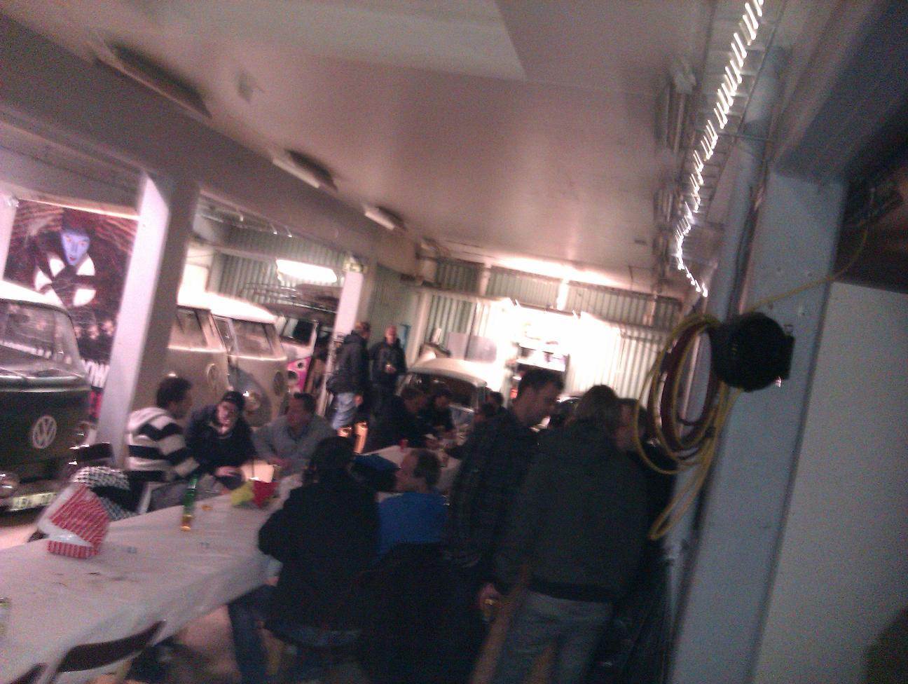 I Borlänge sen så hade hela halva Sveriges folkafolk dykt upp kändes det som, vi gjorde ett snabbt stopp hos Demian först och skålade in helgen och kollade i hans lada, den mannen bör bli 300 år om alla de projekten ska bli klara  ICQ/ad . Sen drog vi till Romme där det var kallt i lokalen men varmt välkommen ! Tacobuffe, öl, kaffe, calvados och ljugandes om gamla och nya projekt och kikandes på de bilar som står i garaget hela kvällen. Skitkul ! ICQ/ag Såg även ett ännu hemligt projekt på bild i en telefon som kommer bli spännande...