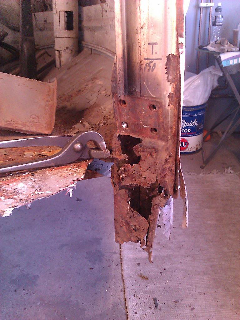 Började med att svetsa färdigt bakre delen av främre hjulhuset( som jag tyvärr inte hade bild på.. ) och bankade sen till en plåt till A-stolpen som svetsades dit, den är gjord för lång bara för att och ska kapas sen... För att passa in skärmen som jag tidigare nämnde nåt om passform som en disktrasa var jag tvungen att hämta in en dörr och hänga dit och ja, ni ser ju..