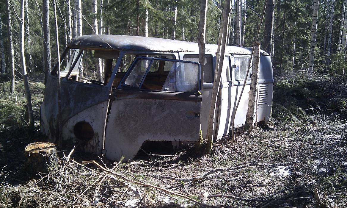 Hursomhelst och apropå Hellbergarns fråga så jodå ;-)  en splitbuss i fint skogsvraksskick ska bärgas hem här i vår bara det kommer att komma fram i skogen!  Faktiskt så har jag varit och tittat på ett till bussvrak, mer komplett men i sämre skick och hur det blir med det får vi återkomma till senare.