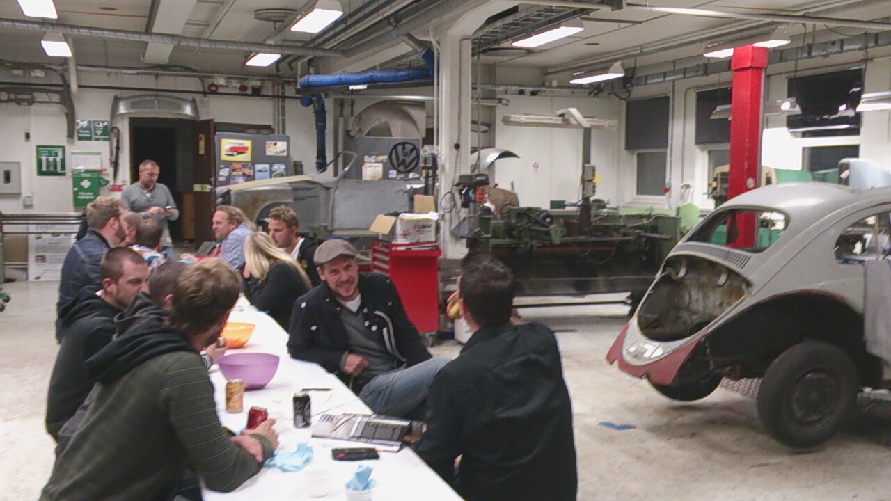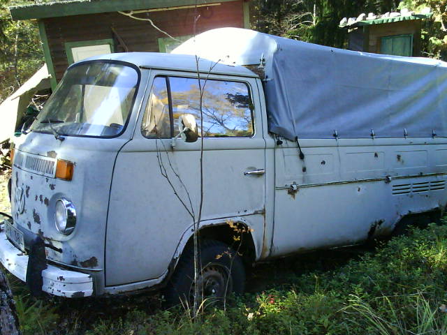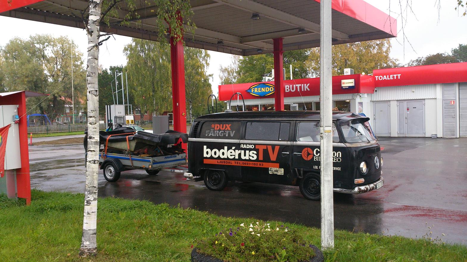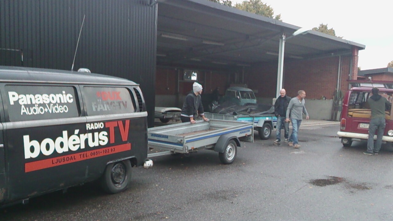 Med 7-8 grader och duggregn, vagnen lastad med en ´54ans platta,en buggykaross,en typ 4 motor och nån låda diverse,kaffetermos och brorsan i bussen och med varma kläder i en väska så gav vi oss iväg. Inga problem med en stark Radio & TV buss!