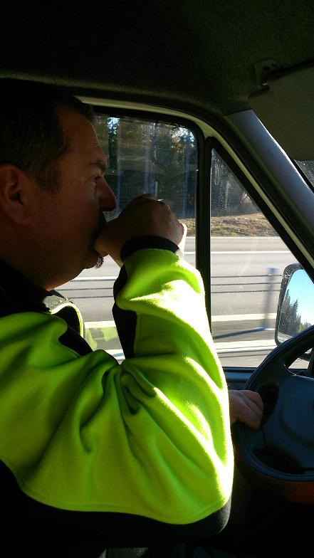 Det blev bara ett stopp på hemvägen, tömde blåsan och fyllde tanken i Bollnäs, så vi var hemma i bra tid men det var tur att vi packat mössa, handskar och en rejäl jacka för det är inte varmt i en buss utan värme. Inget slir på koppling på hemvägen iaf.