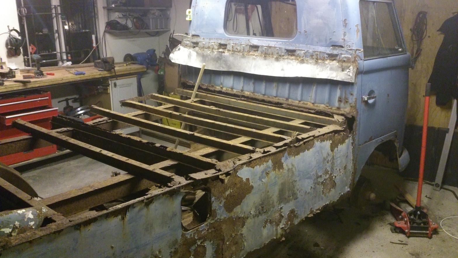 Jag använde inte så många verktyg idag heller egentligen..mest domkraft, kofot, vinkelhake ,vattpass och måttband. En sak är säker, den där pickuppen har i princip inte ett mått som överensstämmer med originalritning!  Default/hmm
