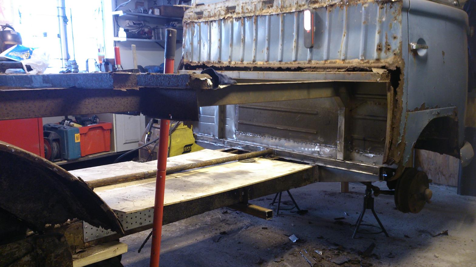 Nja, visst gick jag ut i garaget men det blev liksom inget gjort.. Default/hmm  ..men idag lyste flitens lampa och nu är ramen hel igen, bakre tvärbalk ända ut till tröskeln som inte sitter där än är färdig, värmeröret fixat och brandvägg med innerskärmar fastsatta lite bättre så nu är pickupen skapligt stabil igen! B-)