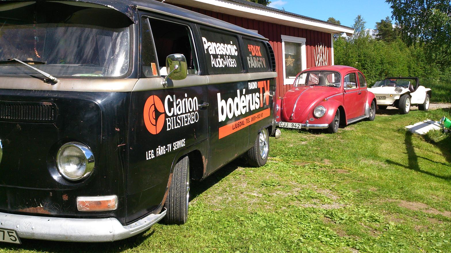Tack för kommentarerna om stuket åxå. Helnöjd jag med och jag fick till växlingslägena och hängde dit stötfångaren det sista jag gjorde  innan vi stack iväg till Grenje. Det blev en fin samling och en mycket trevlig tillställning med ca 15 bilar totalt, bla annat en tidigare ägare av bussen  som rivit fart på ett annat gammalt ´90 tals bygge, vita buggyn på bild 2, och tyckte det var riktigt kul att va på VW träff !  ICQ/af