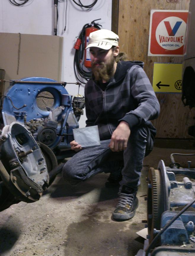 Jäklar i min låda - vilket fynd! Jättegrattis! Två 356-motorer varav en till och med sitter ihop och inte ligger i en banankartong (vilket de som oftast gör), Porschelåda med B-trummor, Abarthdämpare och ett NOS Svensk Rörbockningsormbo. Dessutom en massa mystrim - ååååååh!