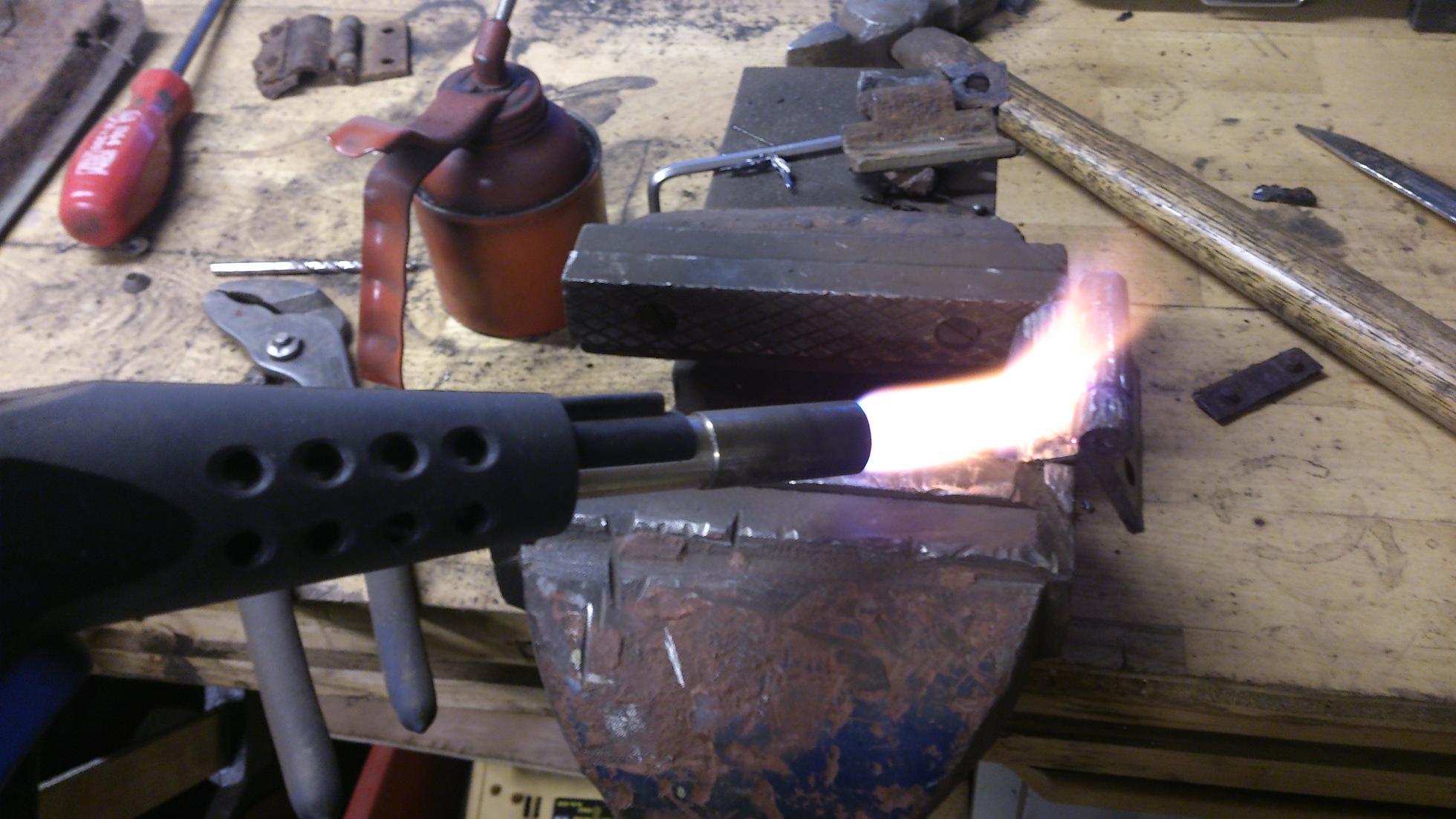 Fick börja med att borra loss det enda halva av gångjärn som satt där och på den sida det fattades så var det naturligtvis inte ens plåt att skruva fast ett i... tillverkade en gängad platta och svetsade fast innan jag snodde ett gångjärn från en trött motorlucka och ett annat ur en fossilliknade klump. När jag fått loss det och få det att röra sej så var naturligtvis sprinten av så då var det bara att borra med tungan rätt i mun då nån pelarborrmaskin ännu inte hittat in i smedjan och med ny sprint så gick det ju att montera dit luckan på bilen och konstatera att, ja vafan , det passade ju bra det här!  ICQ/ae