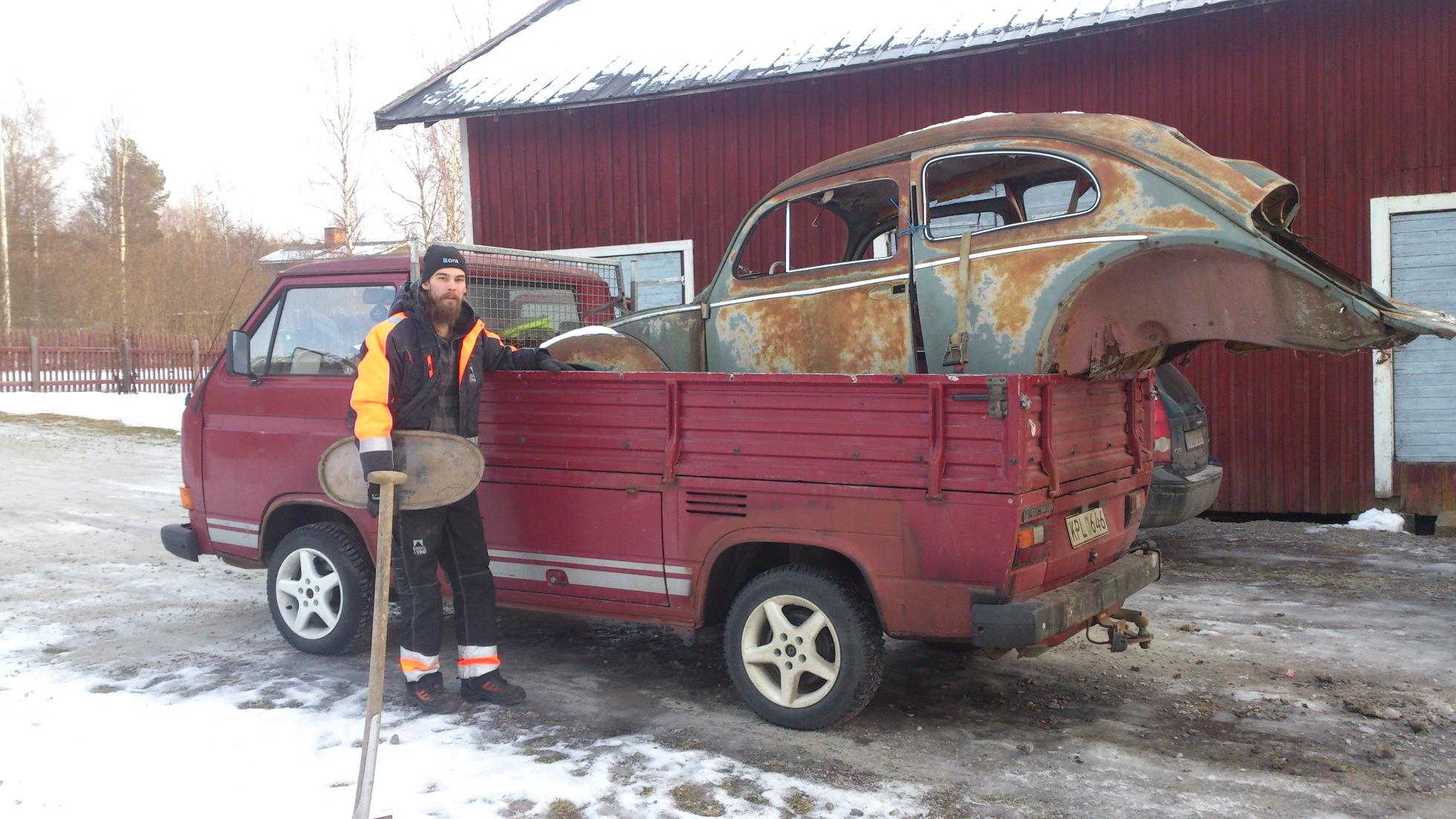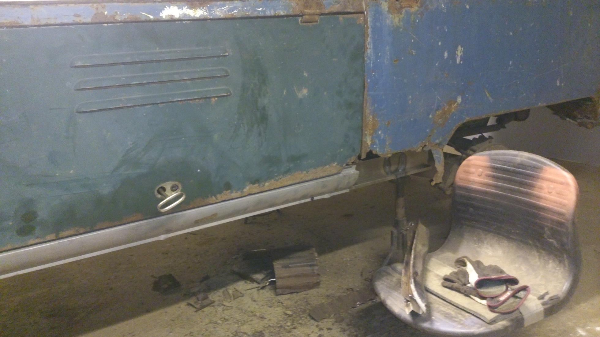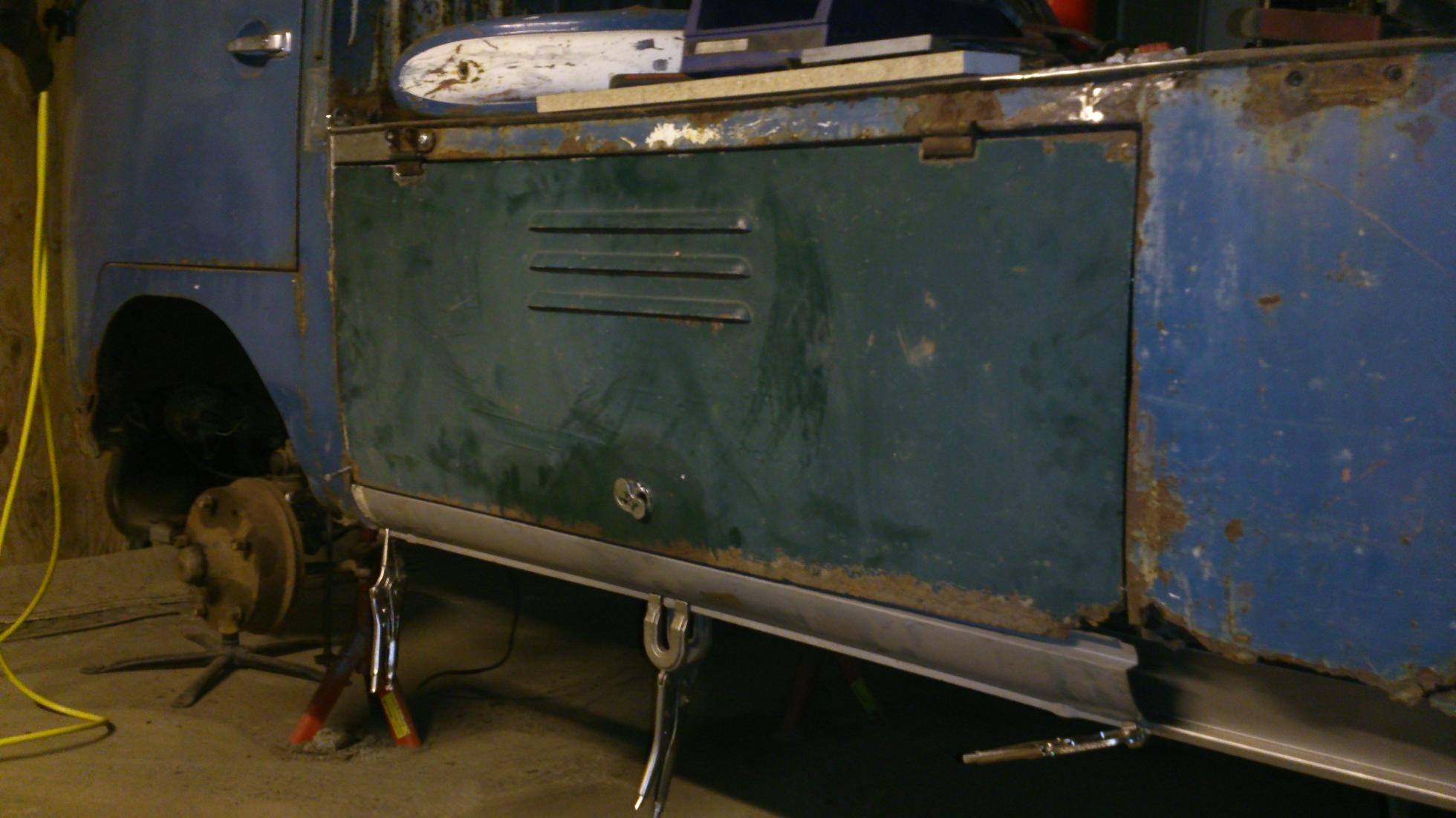 Då hann jag in i smedjan en sväng sen åxå så nu är C-stolpen eller vad vi ska kalla den, den jag kapade ur igår iaf, renkapad och med lite svets klar att sättas in i pickisen. Små steg framåt.. Observera även den lilla dekalen med VW-logga på tröskeln. NOS ser ni, jojomän, fint ska det va..  ICQ/ad