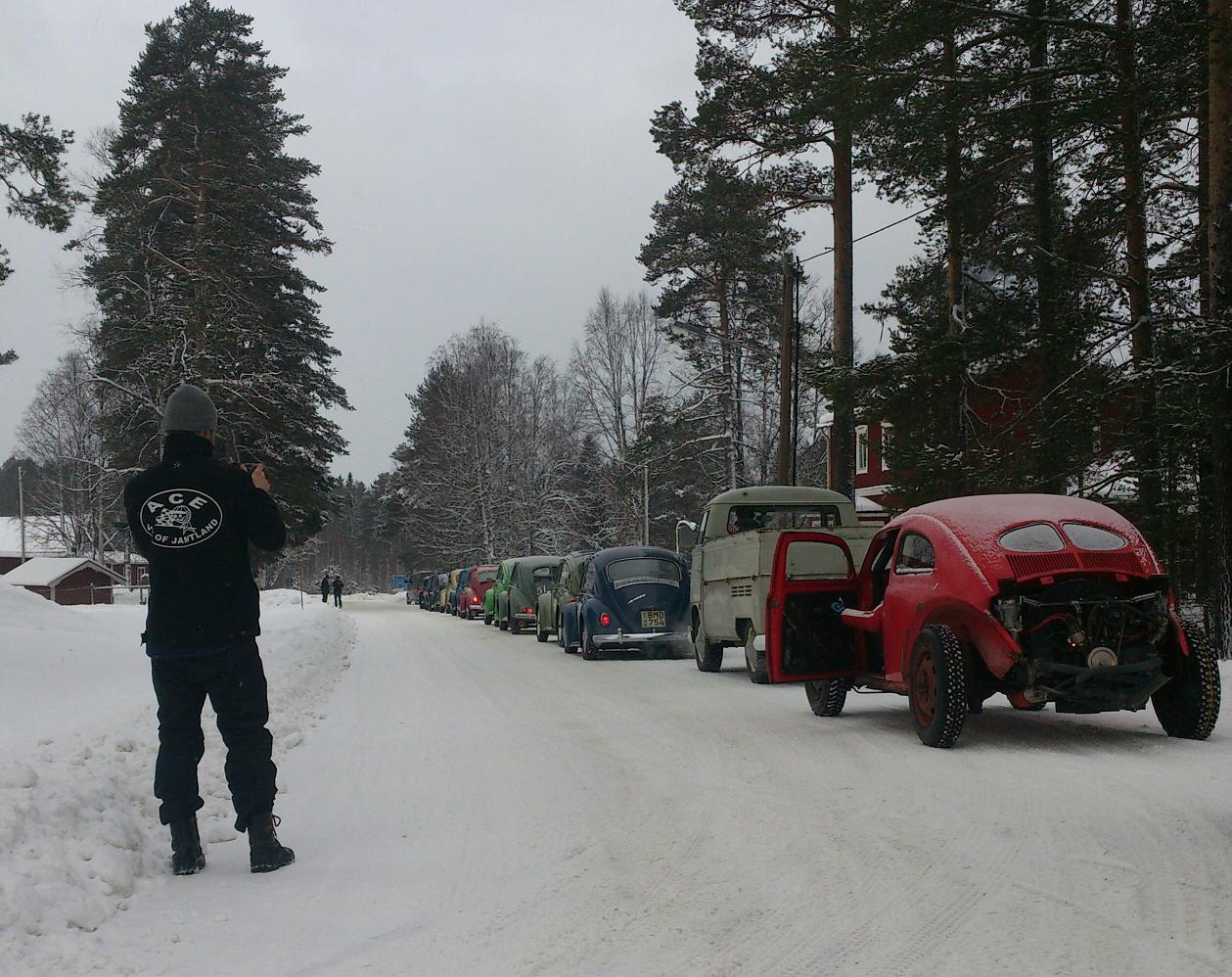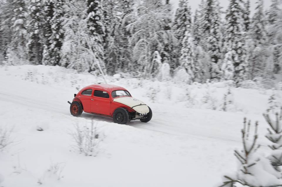 Jo, det är som sagt Herman från Gävle som har den. Vet dock inte så mycket om bilen mer än att det är ett gammalt cal-looker bygge från Gotland som Herman kapat ner och byggt om till isräser med Baja huv och 2387 racemotor.