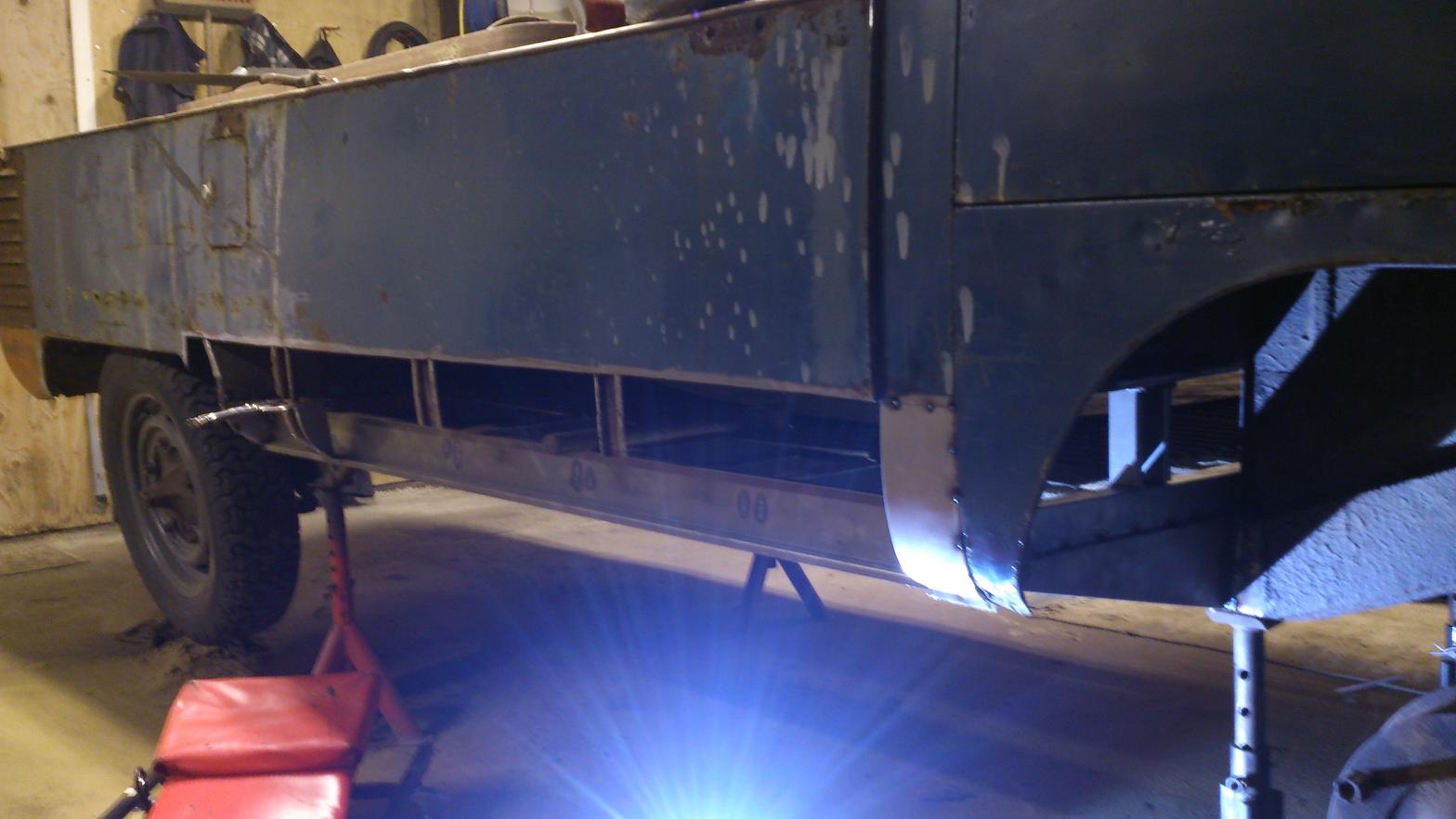 Observera den kraftiga bakstötfångaren/draganordningen på flaket. 80x50x8 U-balk !  ICQ/ae Den ska ju naturligtvis tillbaka. Mycket fränare än sån där töntig färgmatchad pressed bumper.. borde bygga en att sätta fram åxå.  ICQ/af
