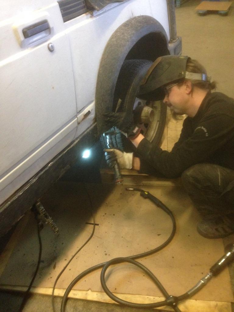 Puttrar på lite lagom i smedjan. I fredags så var jag inlagd. I lastutrymmet då. Kändes rätt nära till att ringa Psyket åxå för att bli inlagd där. Inte den trevligaste arbetsställningen direkt men nödvändigt för att kapa lite. Ställde dock en öl utanför så jag visste att jag skulle ta mej ut. Fortsatte utifrån idag och nu sitter de mesta plåtarna och balkarna där åxå så nu närmar det sej att få dit ytterskinnet och lämna det bakom mej.  ICQ/af