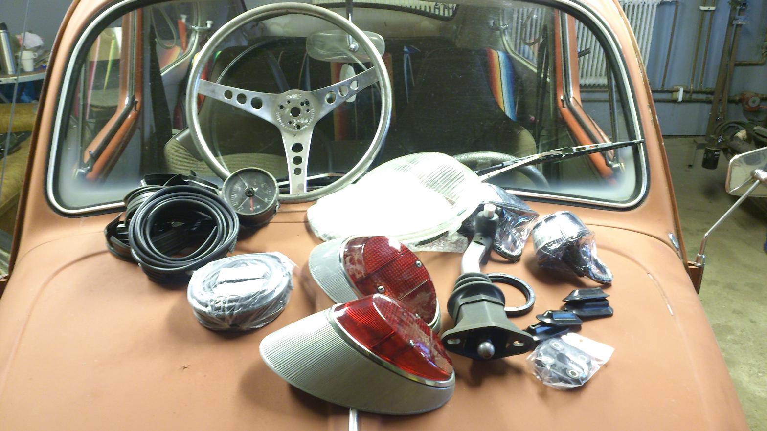 Plasten på bakljusen är ju riktigt fräna, har sett såna på en -66 här i Falun coolt och lite annorlunda tillbehör. Som linda på ratten kan jag rekomendera cykellinda, finns en massa roliga färger och kvaliter brun linda kanske inte vore så dumt.  Mags är ju rätt fräna kommer nog bli kanon, du sitter på en liten fälg gömma märker jag. Köpa fälgar är det roligaste som finns, men i mitt fall kommer dom allt för sällan till användning...