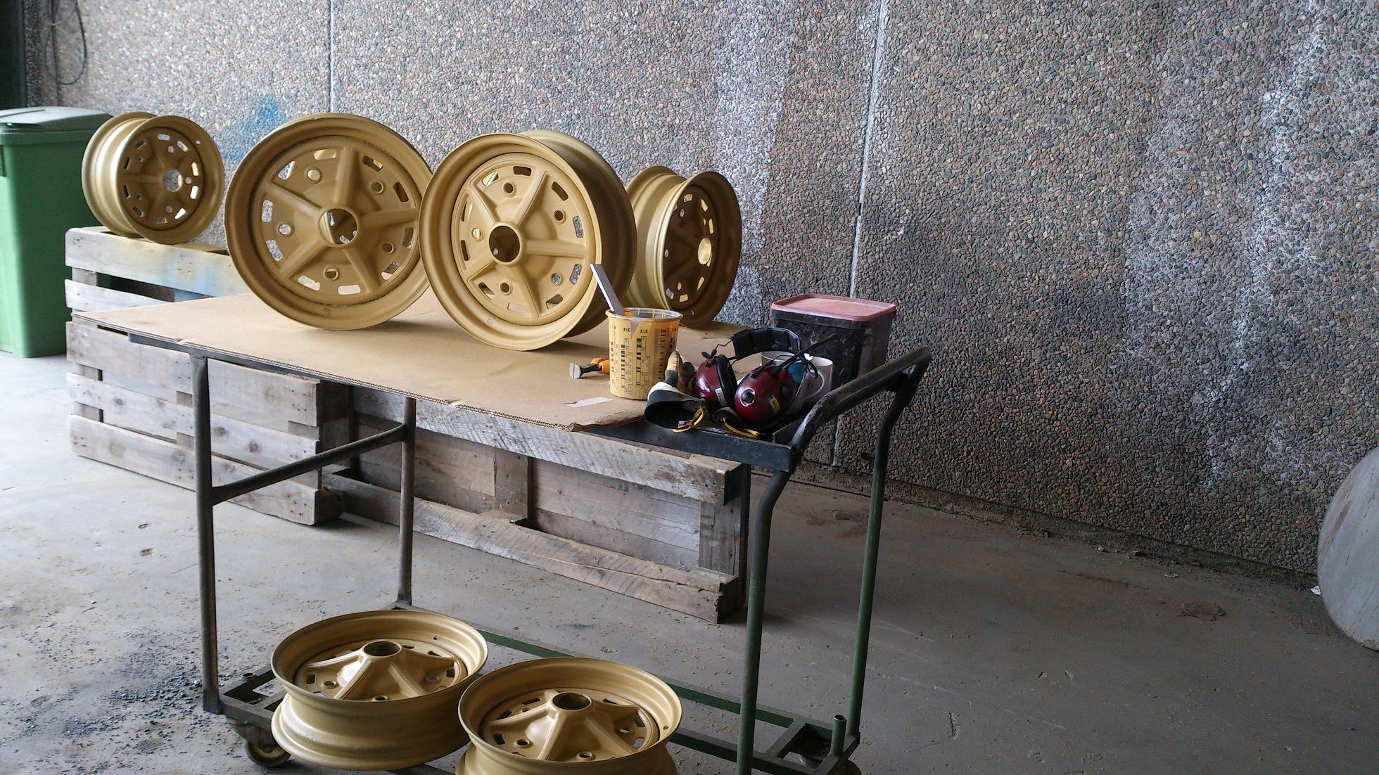 * Alla fälgarna är inte mina utan ett set är någon annans...  jag har bytt till 5,5" bana på fyra av dom och fyra är då original 4,5". Så nu finns det två set med nyblästrade SA´s i Hälsingland   och de dyker förhoppningsvis upp på några roliga fordon i framtiden.  ICQ/af