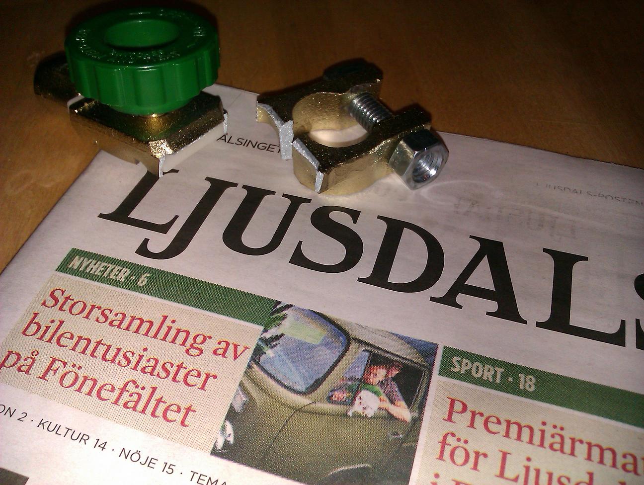 Tänkte jag skulle vara lite duktig ikväll och montera batterifrånskiljare , det kan ju vara bra att ha på en gammalbil. Fixa och trixa för att montera dit en ny jordkabel , Check ! fixa och trixa för en ny kabelsko för att montera frånskiljaren, Check ! montera dit frånskiljaren på batteriet ,lite för trångt hål , banka lite , trasig....  ICQ/ad  ( Biltema..)