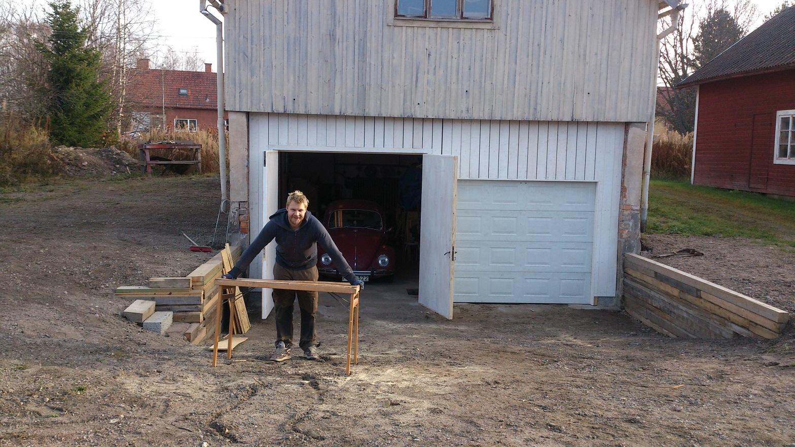 Vidare mot Romme där det var full aktivitet med utbyggnad/ombyggnad. Övervåningen ska inredas med mekbås och med ett garage på andra våningen så blir det ju en del pyssel. Hur det kommer att bli visar sej senare..