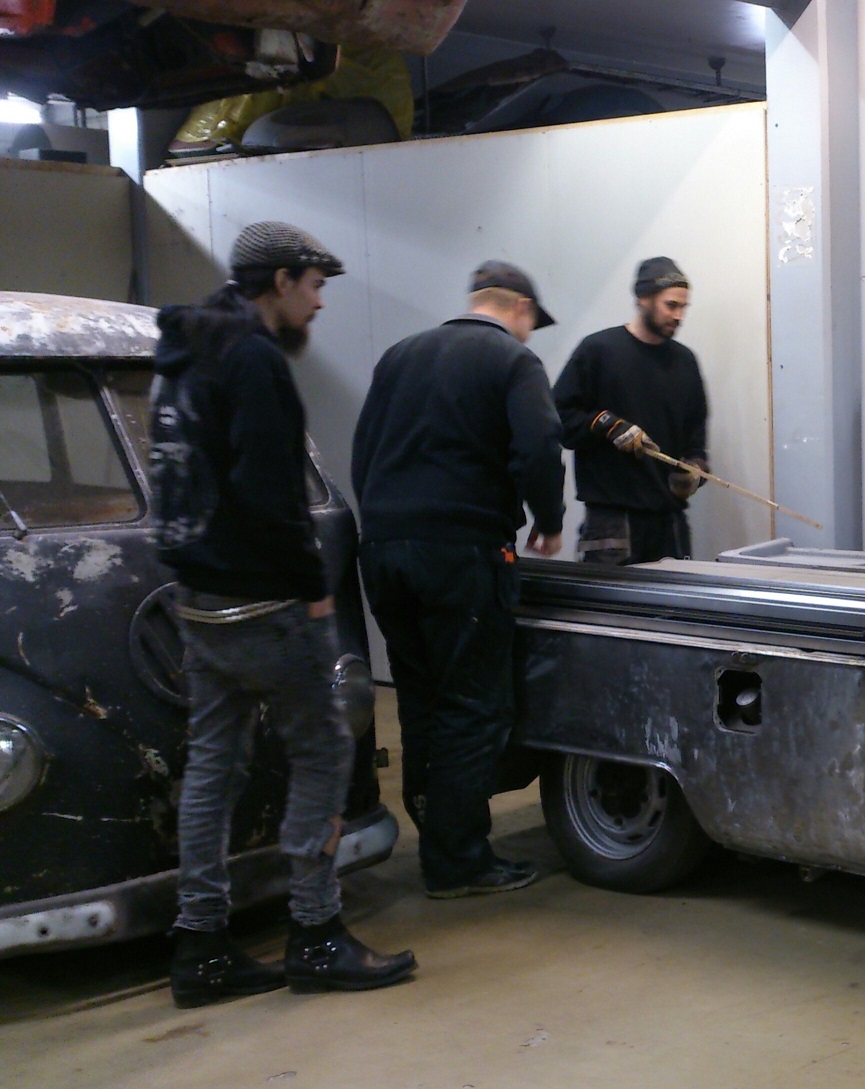 Jag var på en miniturné i söndags för att kolla upp vad som händer i garagen och hämta hem lite rep.plåt till splitbussen jag köpt av Gullback i dalarna. Hämtade upp Swing i Bollnäs och siktade på Foppa´s Place i Enviken. Skönt garage som börjar bli bra riktigt bra efter en hel del jobb och tack för kaffet!