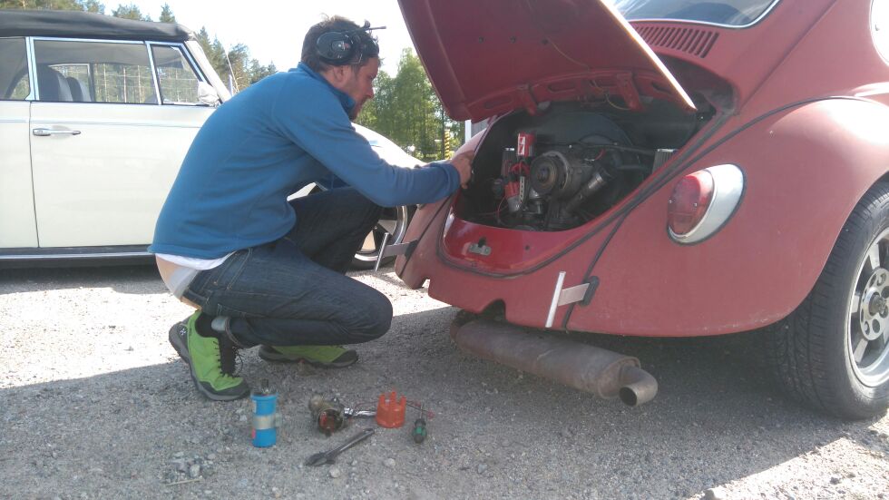 Jag åkte till Volksmeet #2 förra fredan tillsammans med brorsan. Uppsamling i Hudiksvall men andra likasinnade och vidare färd mot Sundsvall. Allt gick bra tills sista korsningen 2 km från träffen. Då small det till , laddlampan tändes och övre remskivan lyste med sin frånvaro på generatorn... Den hade snurrat på axeln och tagit med sej gängorna ut efter muttern släppt så det blev bogserlina med en öl i näven sista biten in.  ICQ/ae