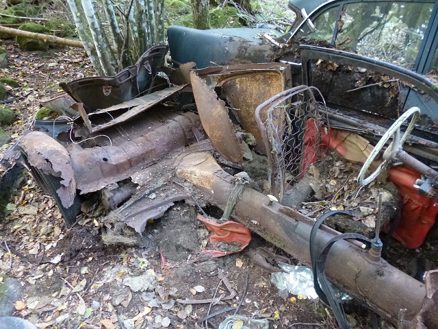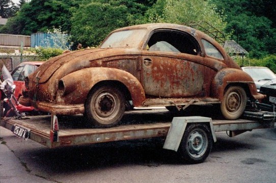 -52 soltaksbil som stått gömd i Blekingeskogen sedan 1968, tyvärr sopslut.