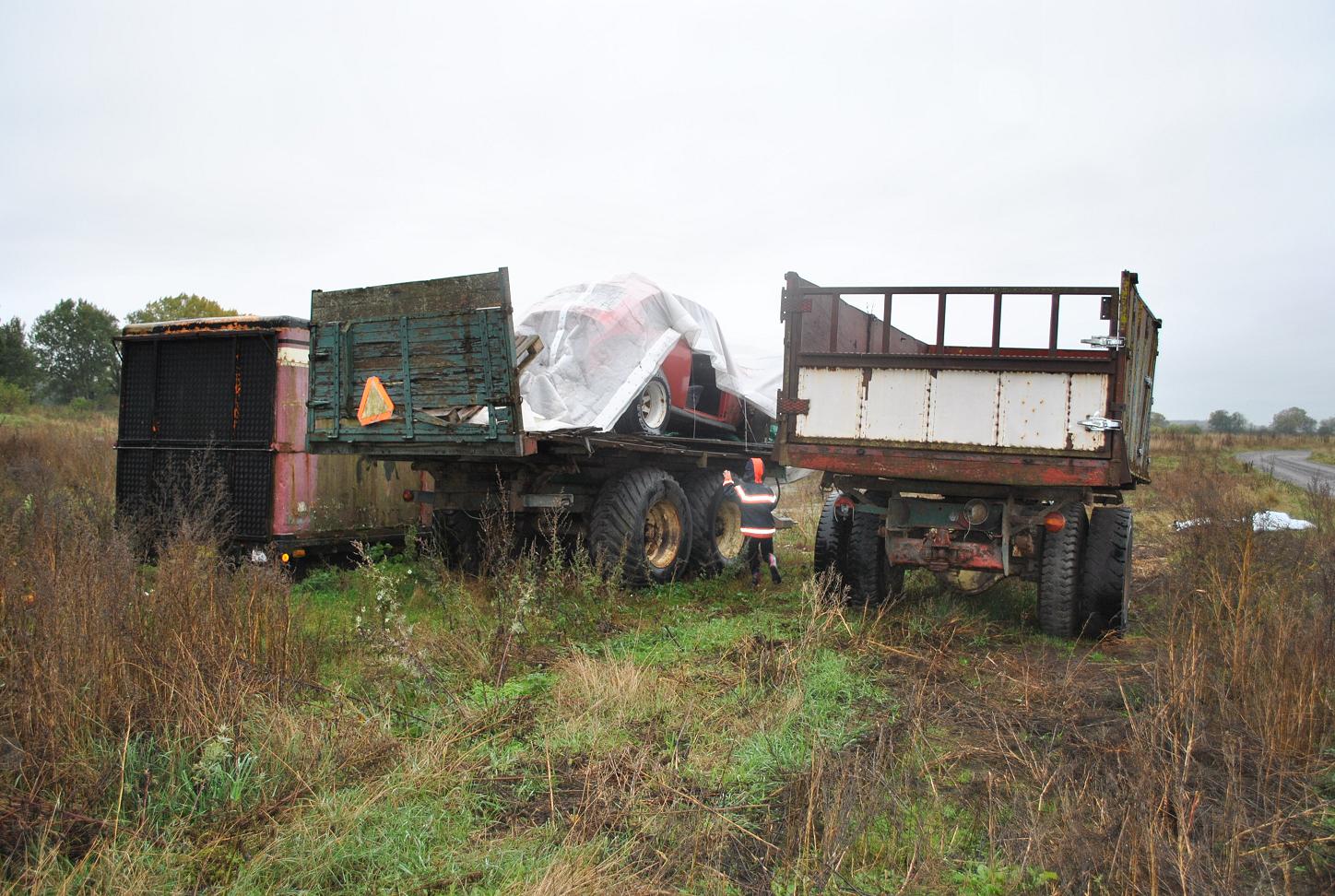 tog med luftrenaren.. kompisen har fått lov av tanten som äger torpet i bakgrunden.. att hämta vad han ville.. tyvärr hann någon annan ta både drag krok och att dom köttade ut hela rutpartierna på sidorna.. men en framvagn har hämtats. i alla fall