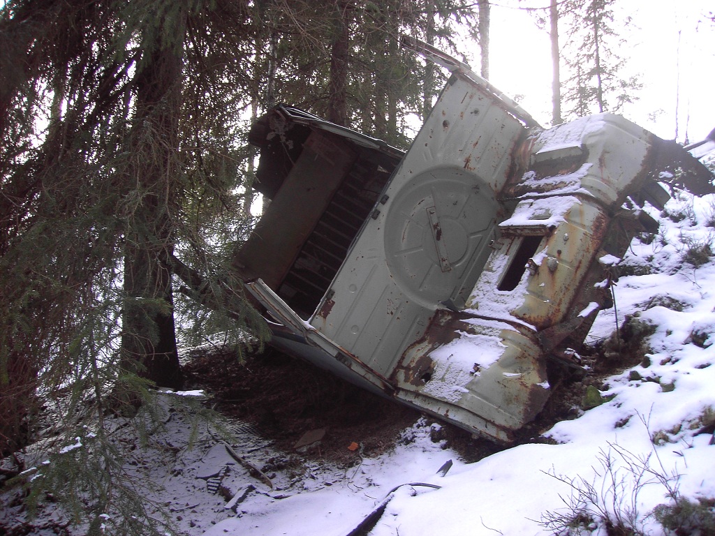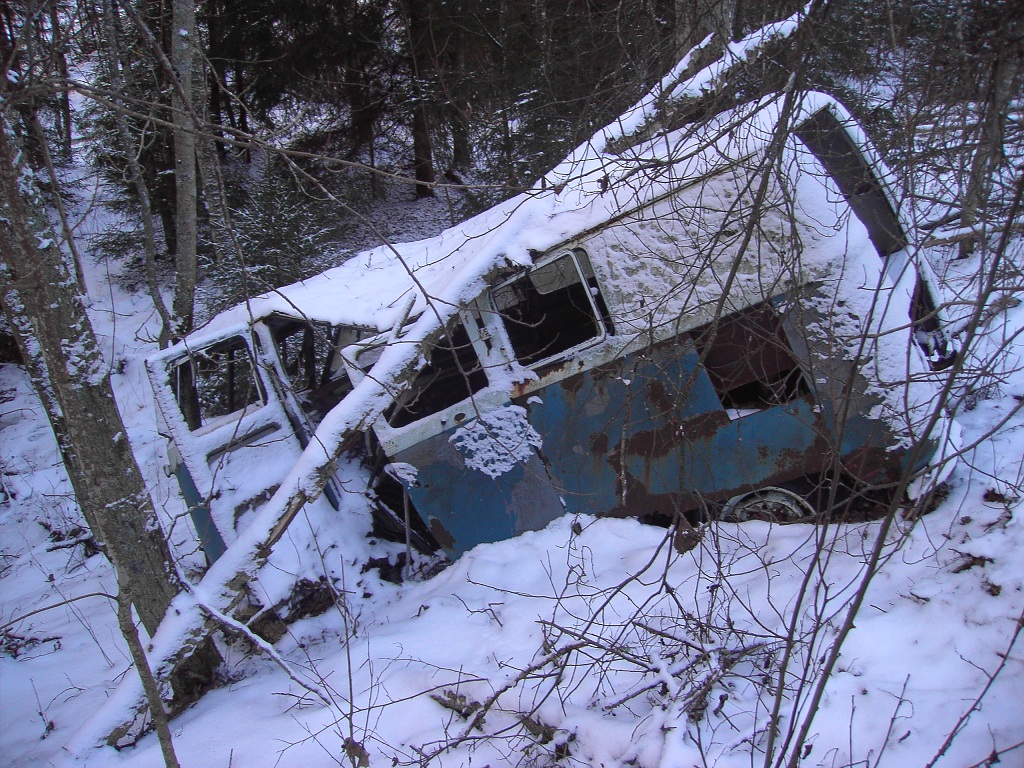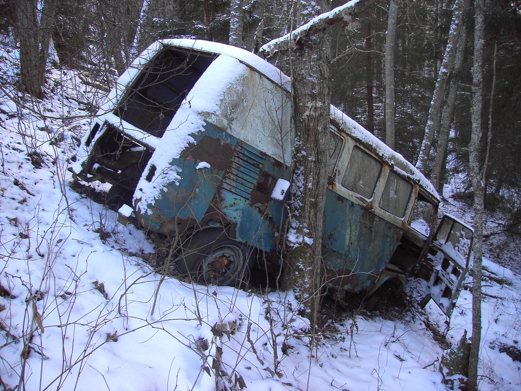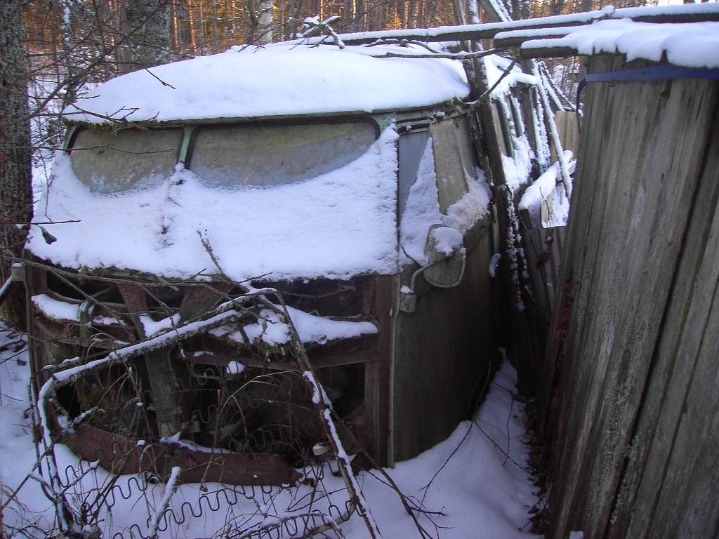 Gjorde idag en liten tur i det fina vintervädret för att kolla upp ett tips om en gammal Vw buss, Efter lite åkande och promenader på oplogade skogsvägar/stigar kom vi på andra försöket rätt. Det var inte så mycket kvar av den. Åkte sedan vidare för att leta rätt på en gammal buss som jag besökt för över 15år sedan ( det bättre vraket )