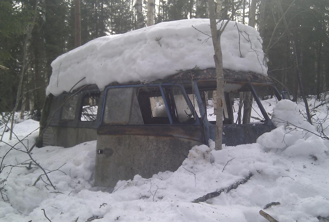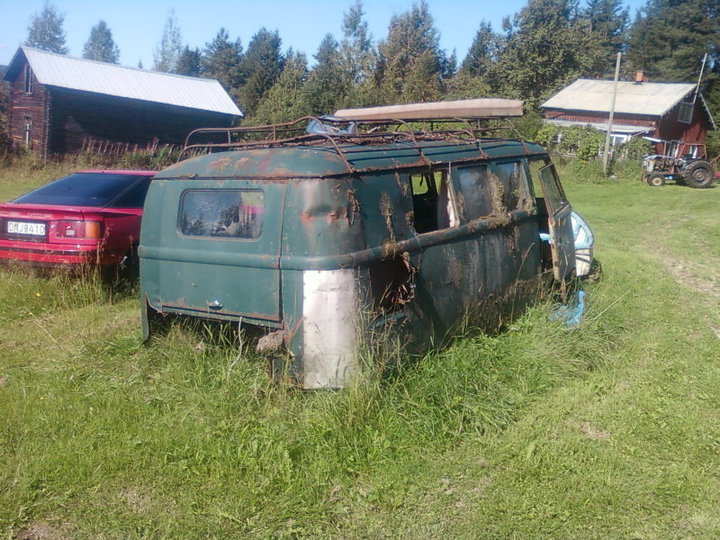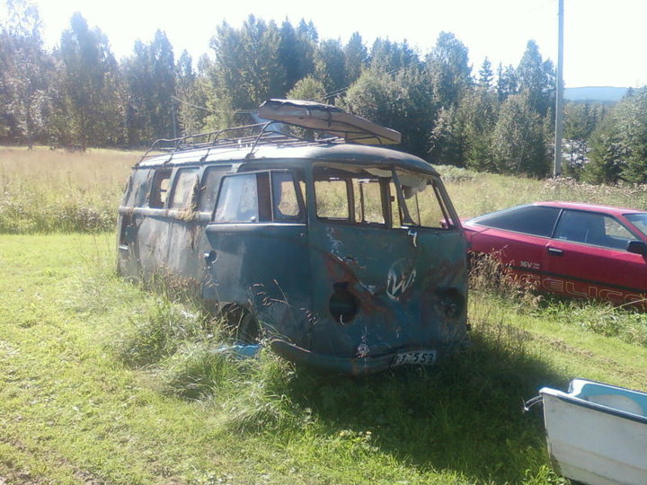 Jag och en kommpis gick ut i förhoppning att hitta en folkabuss men det var något annat. Någon karosserifirma måste ha byggt om den till husbil eller nått