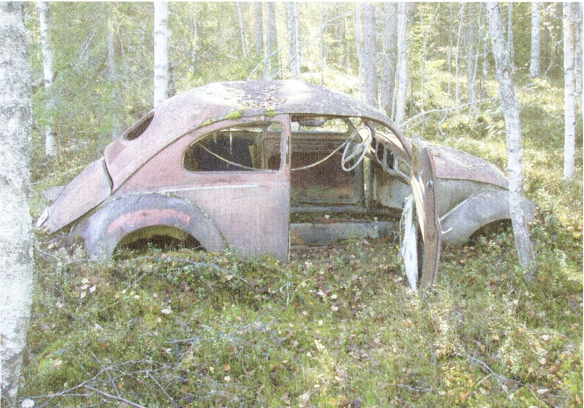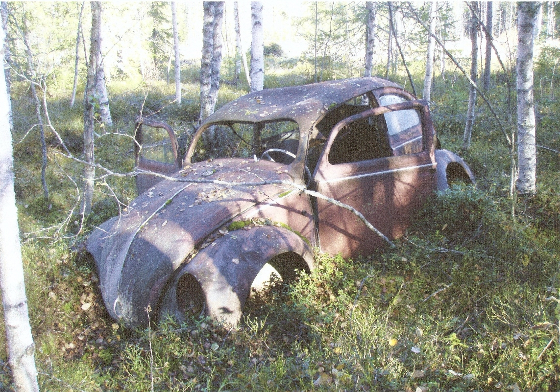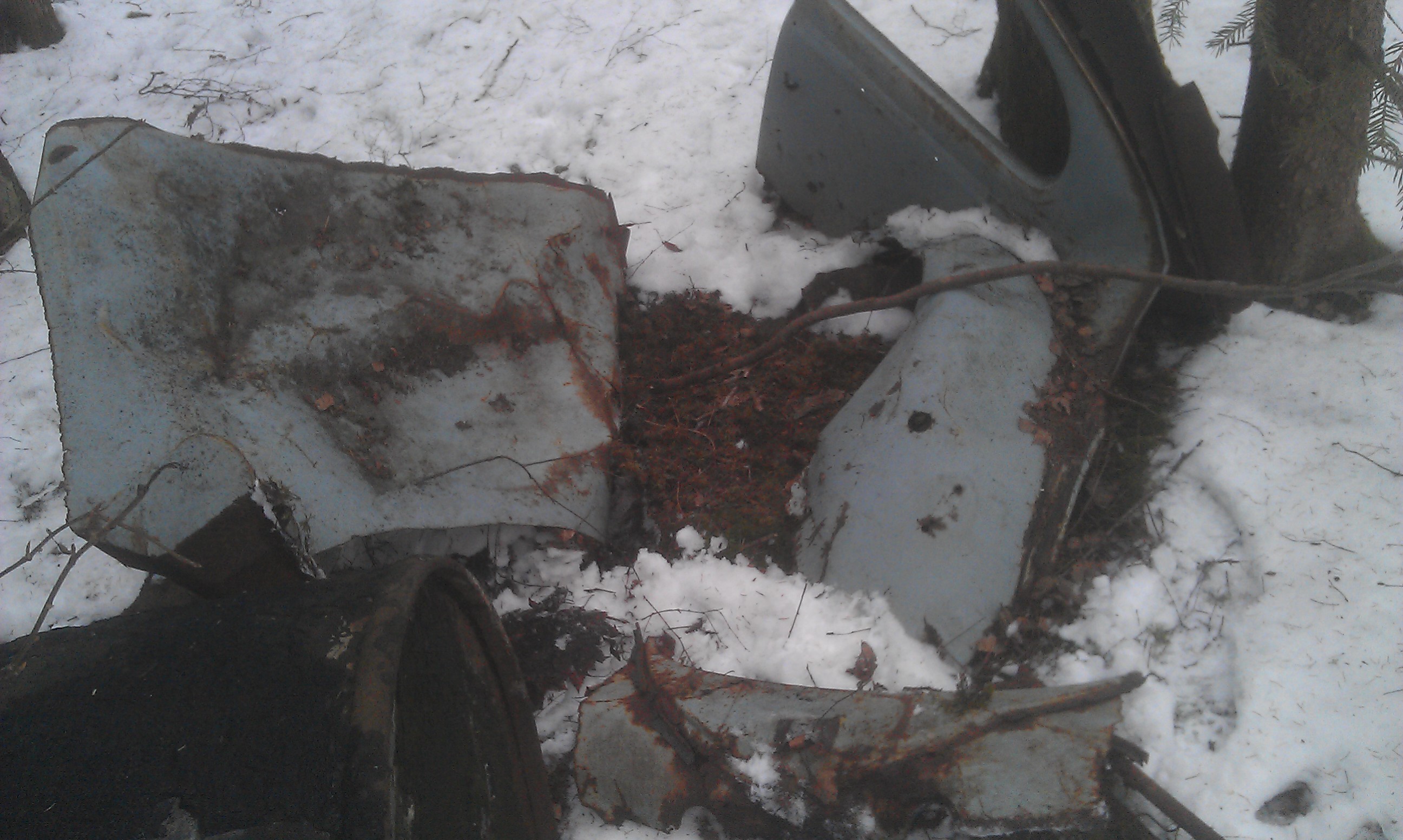 Ibland behöver man inte åka långt för att åka på skrotsafari, fick tipps om att det funnits bilvrak i skogen intill där jag bor, vet att jag sett gamla hinkar och lite blandat skrot i ett gammalt grustag, när jag ändå rastade vovven så gick jag ner där igen och fann detta, rester från en slaktad oval. O detta bara 300 meter hemifrån, samt att jag bott här i drygt 3 år och har varit nere och gått där tidigare men ca 20 -30 meter just från denna platsen.