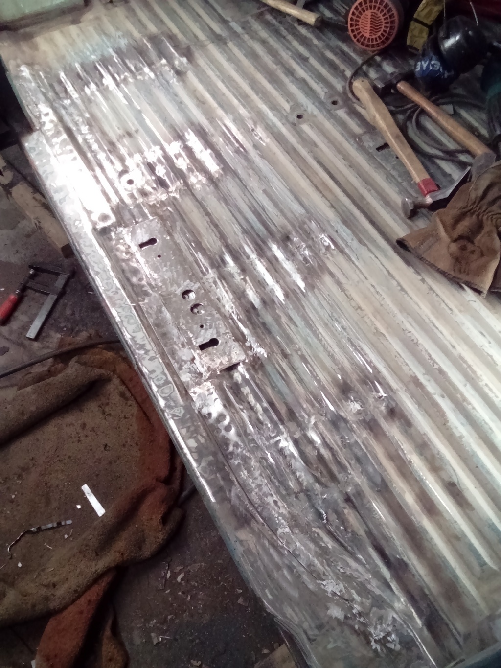 Slipandet av svetsfogar är nog klart klart för den här gången. Känns väldigt skönt att kunna gå vidare. Jag har fortsatt med att laga lite rost och andra hål som inte ska vara kvar.