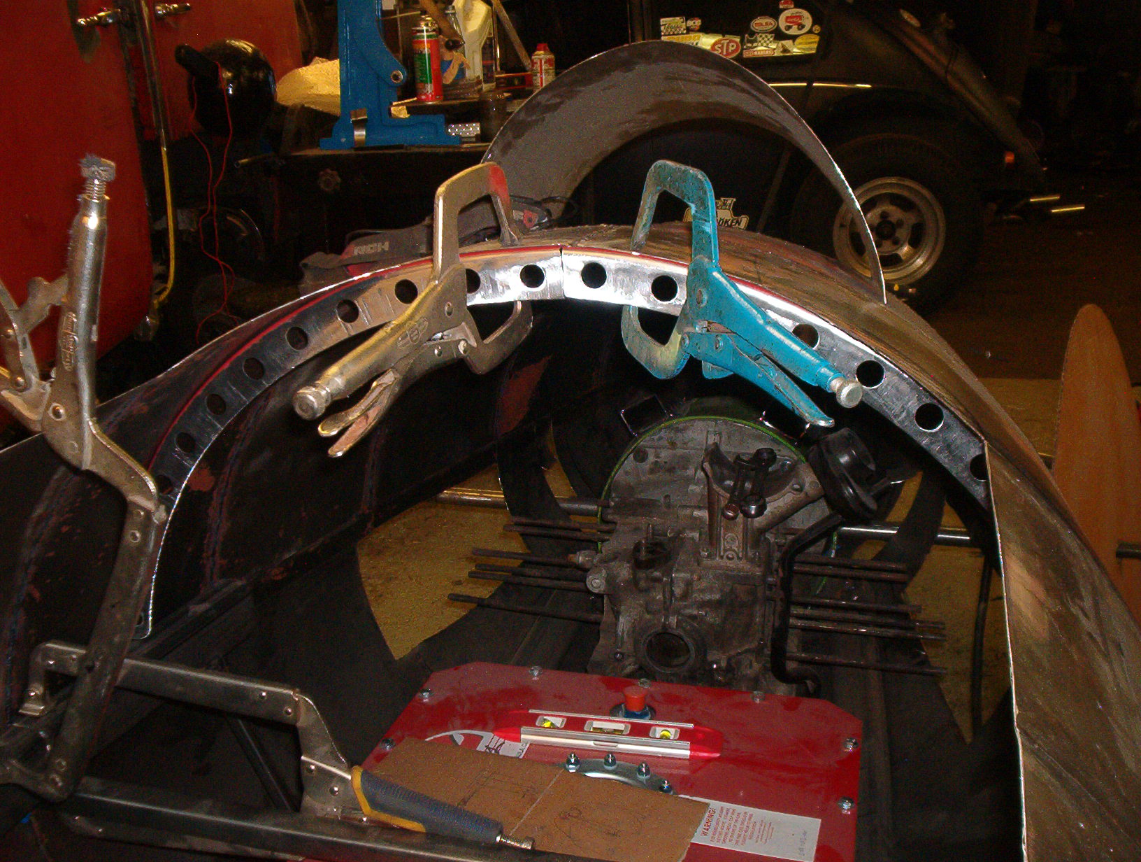 nu när man är klar med alla andras grejor så hinner man ju med lite kvälls mek med sitt eget ,kapat upp motor luckorna o börjat kolla lite hur scopet kan se ut  Default/hmm ,sen letandes av ideer så hittade jag en tatuering som man tydligen skall ha  ICQ/ag  o en ball lackering som är värt en fundering  ICQ/af men mest tid går fortfarande åt till att fundera o prova sig fram men snart är det dags för inner golv o pedaler