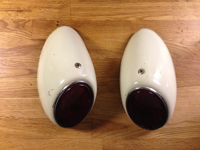 Passar 56-60. I bra skick förutom lite ytrost under lacken på ena reflektorn. Fästbyglar och lamphållare följer med. 750kr.