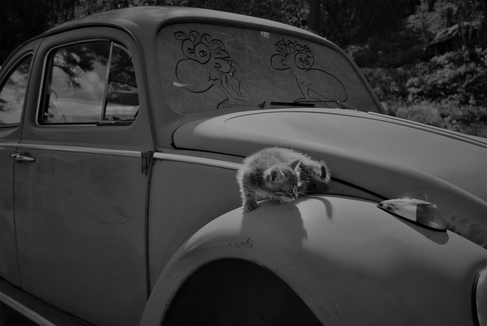 Slänger in en bild på en av kattungarna som huserar här hemma ett tag till, passade på att kasta upp en objektet ute när kameran va framme.