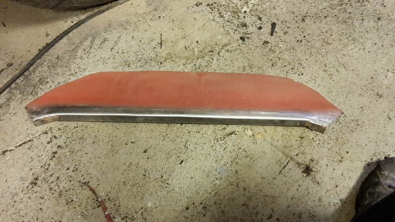 Kanten mot tröskeln punktsvetsades med punktsvetsmaskinen. Den älskar jag verkligen. Fort, snyggt och inget efterarbete.