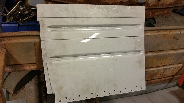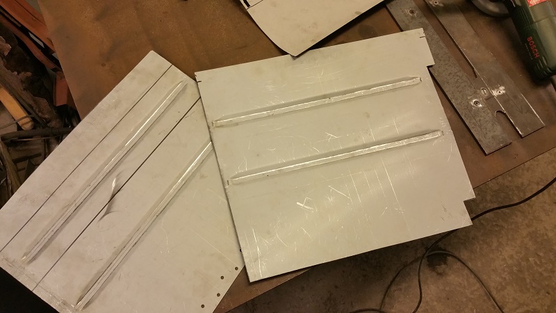 Nu är plåten tillklippt och anpassad för att fällas in, men innan så ska jag göra en till andra sidan också.