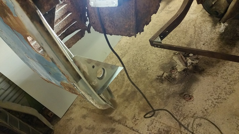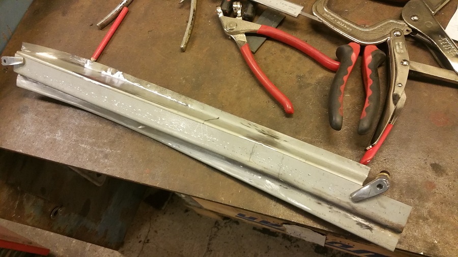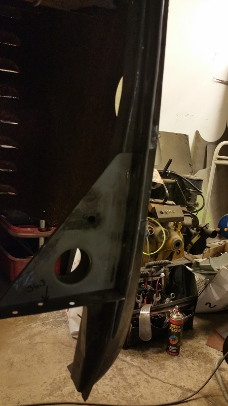 Men har iaf konstaterat att jag fick byta nästan hela den vänstra D-stolpen  Default/hmm  Så det var bara att göra en ny stolpe och sedan anpassa den till den lilla bit frisk originalstolpe som blev kvar efter vinkelslipsrundan i jakt på svetsbart material  ICQ/ae
