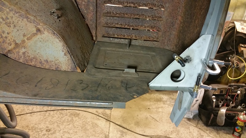 Med det värsta bortkapat som satt ivägen så gick det att klämma upp delarna med lite klämmor mot karossen istället ICQ/ab