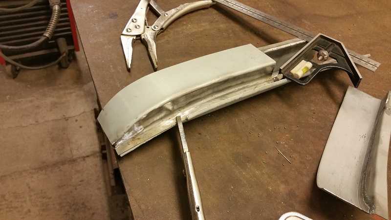 Till slut så hittade jag tillräckligt med svetsbart material  ICQ/ae Så efter lite mallande och tillyxande av några plåtar så var det bara att tända svetslågan igen och sömma ihop den bakre delen av hjulhuset.