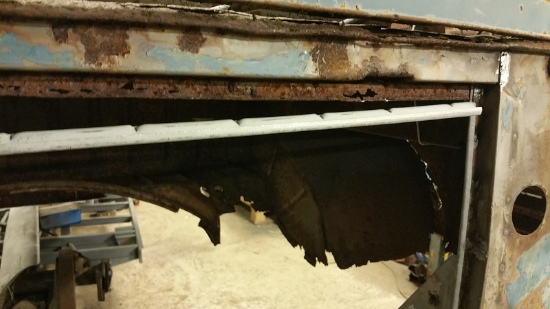 Men jag har nu småmeckat lite i den främre delen av de bakre hjulhusen och dess mellanplåt, där var den ganska dålig i nederkant där lastrumsgolvet möter upp. men efter några väl avvägda böjningar av en plåtremsa så blir det nog ordning på den biten också.  ICQ/ab