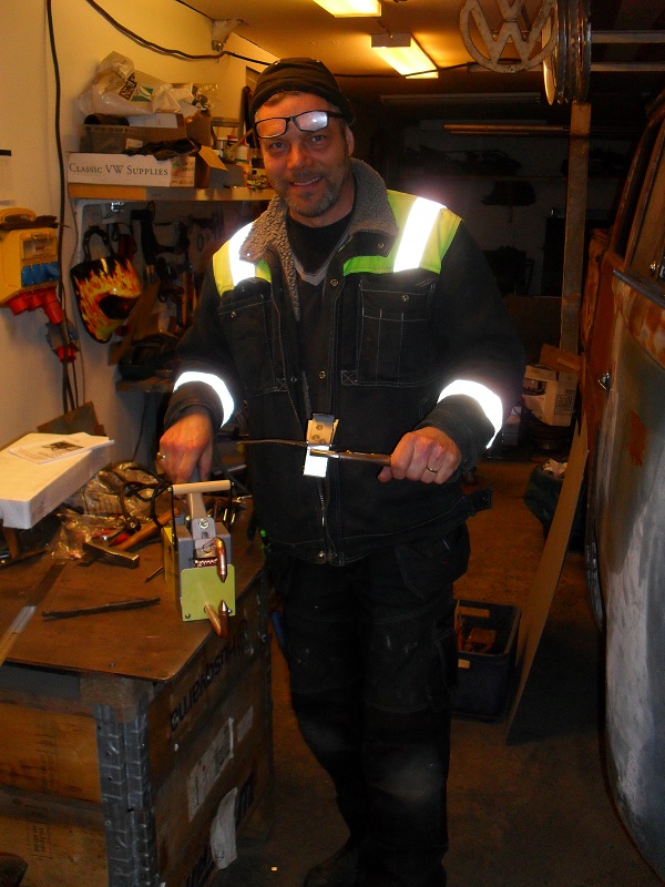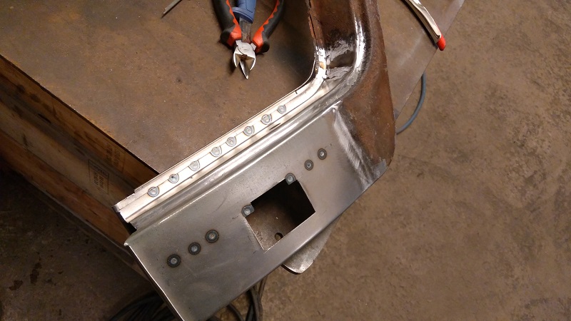Väljer nog som det ser ut att lägga svetsskarven mitt i Z-böjen/dörröppningen då jag inte lyckades fixa Z-bockningen tillsammans med den sväng som karossen har där. Och det är ju vid sådana här tillfällen som man är glad att jag inte är någon riktig svetsare än, utan en jäkel på att slipa