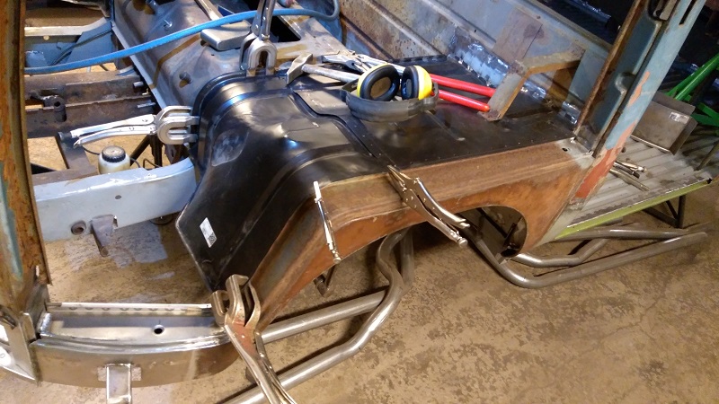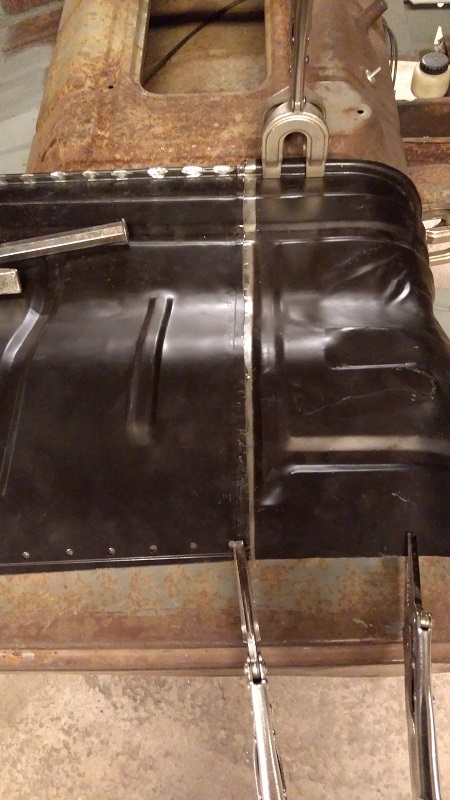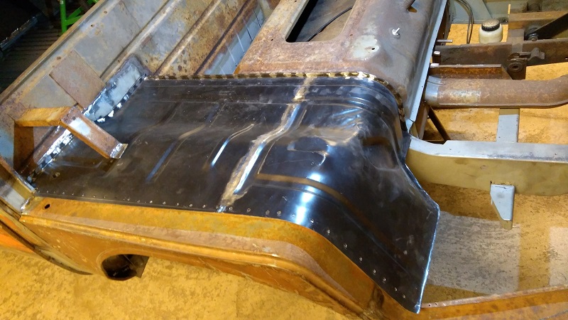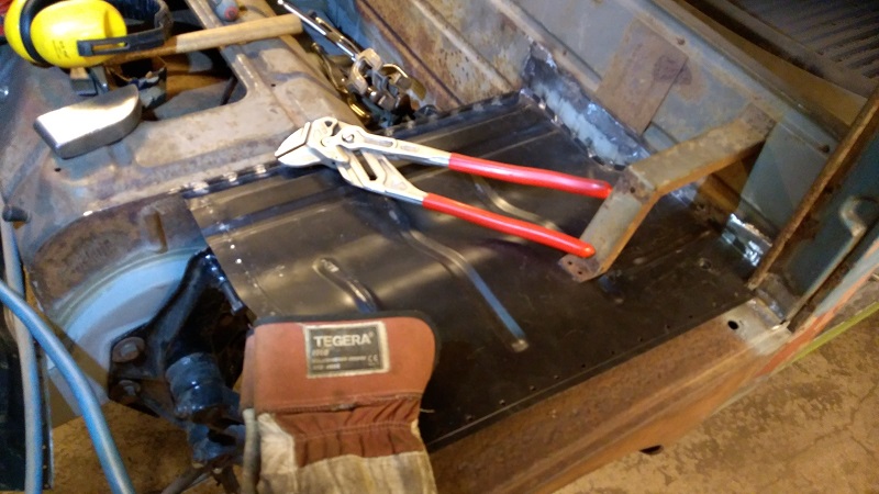 Men nu när den bakre delen var inpassad och hålad inför svetsning så passade den främre biten "som en smäck". Vilket i sin tur gör att den ansluter mot framgolvet på ett mer rätt sätt utan att behöva "tänka utanför boxen" så att säga