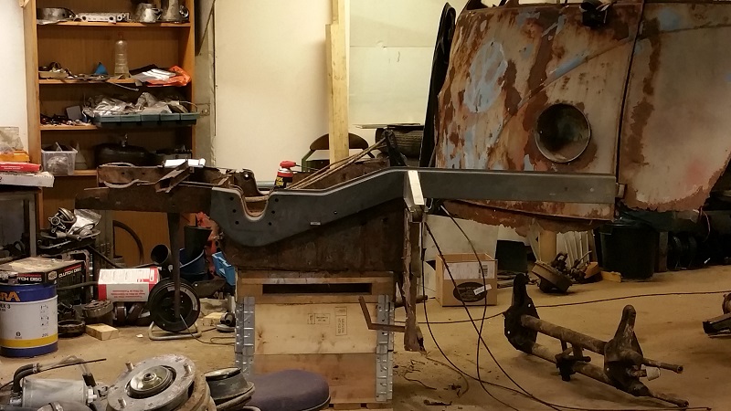 Då har jag rensat bort det mesta lösa grejerna från framdelen/ramfragmenten så jag kan börja måtta å se hur krokigt allt är  ICQ/ag