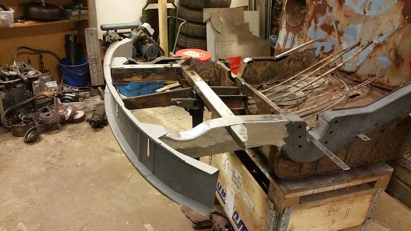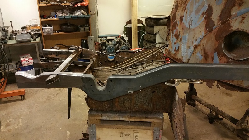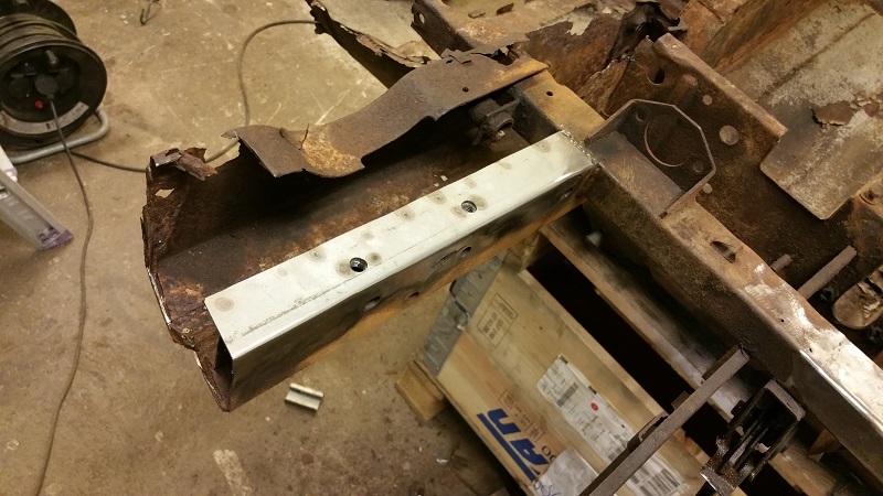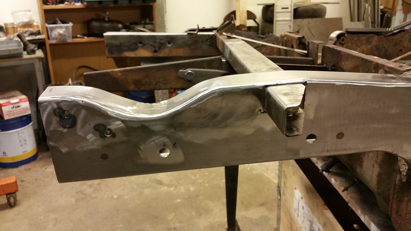Sen får vi hoppas att jag inte glömmer att fortsätta där jag slutade den här gången, måste komma ihåg att börja med att sätta dit mutterstycken för bärjärnen till stötfångaren samt att fixa de små plåtblecken som ska hålla kabelstammen i ramskenan samt några hål som ska tas upp för bland annat skruvarna till hasplåten.